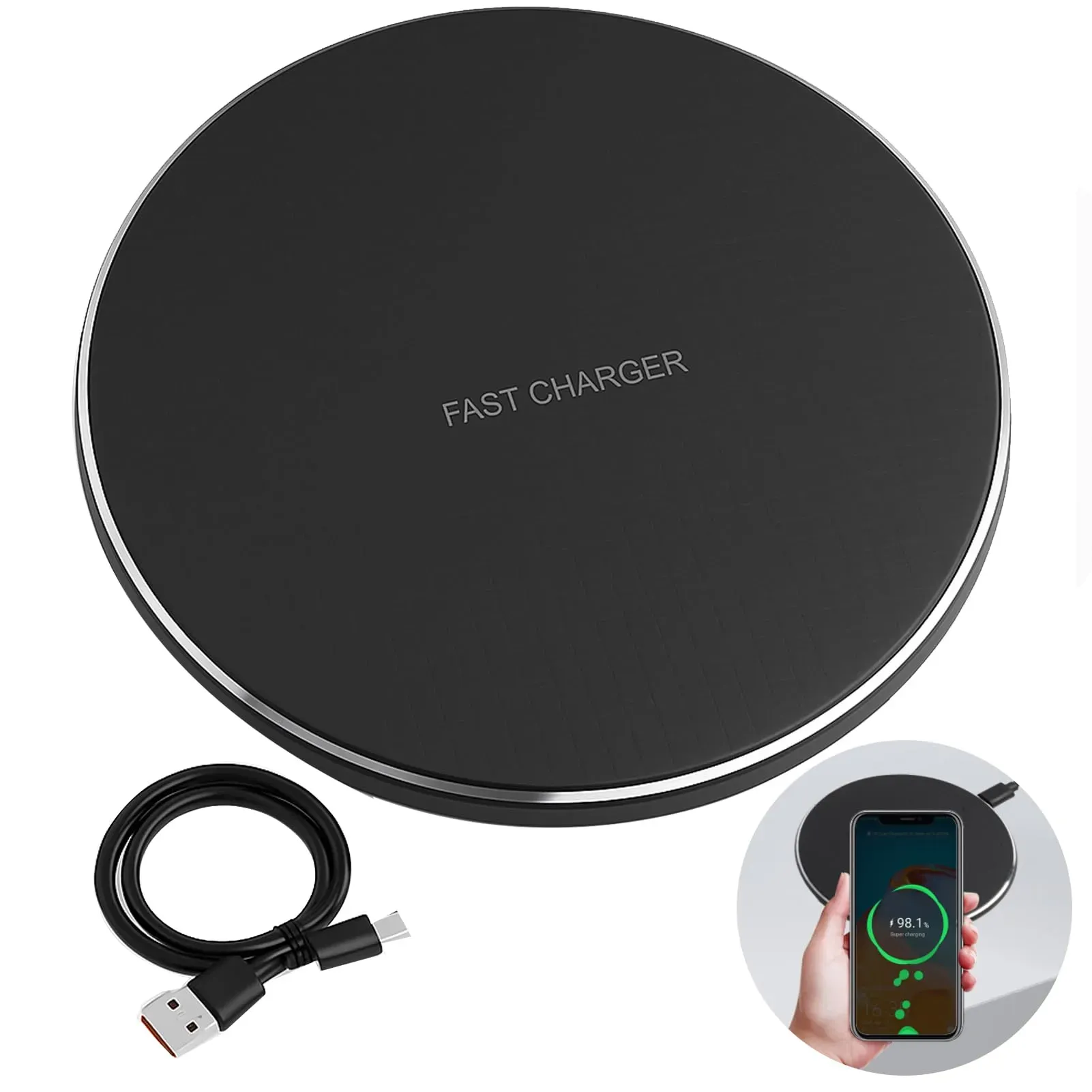 Auf Lager Versand durch AmazonWireless Charger, Kabelloses Ladegerät 15W Wireless Charger, Induktive Ladestation kompatibel mit Smartphone 8-16 Serie, Galaxy S23/S22/S21, Pro 3/2, schnelles Laden für Handy Ladestation