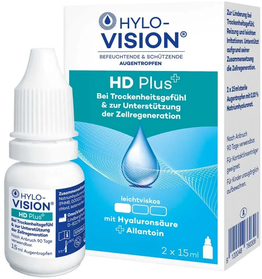 Verfügbarkeit: ca. 1 Werktag - 354.00 € / 1 l - Kategorie: Arzneimittel - OmniVision - GTIN:9120048760306 - PZN:00660475 - 00660475: OmniVision GmbH - HYLO VISION HD PLUS 30 ml - 10,62 Euro bei Apotheker.com - gefunden von billiger.de ![]() ![]() OmniVision GmbH HYLO-VISION HD Plus Augentropfen 2X15 ml 00660475