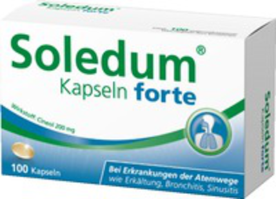 0,32 € / 1 st - Kategorie: Arzneimittel - Klosterfrau - GTIN:4008617223979 - PZN:00744284 - Soledum Kapseln forte Wirkstoff: Cineol 200 mg Anwendungsgebiete: Zur Behandlung der Symptome bei Bronchitis und Erkältungskrankheiten der Atemwege. Zur Zusatzbehandlung bei chronischen und entzündlichen Erkrankungen der Atemwege (z.B. der Nasennebenhöhlen). Hinweis: Enthält Sorbitol - 32,19 Euro bei Apotal - gefunden von billiger.de ![]() ![]() Klosterfrau SOLEDUM Kapseln forte 200 mg 100 St