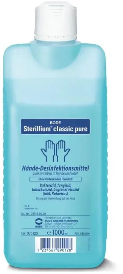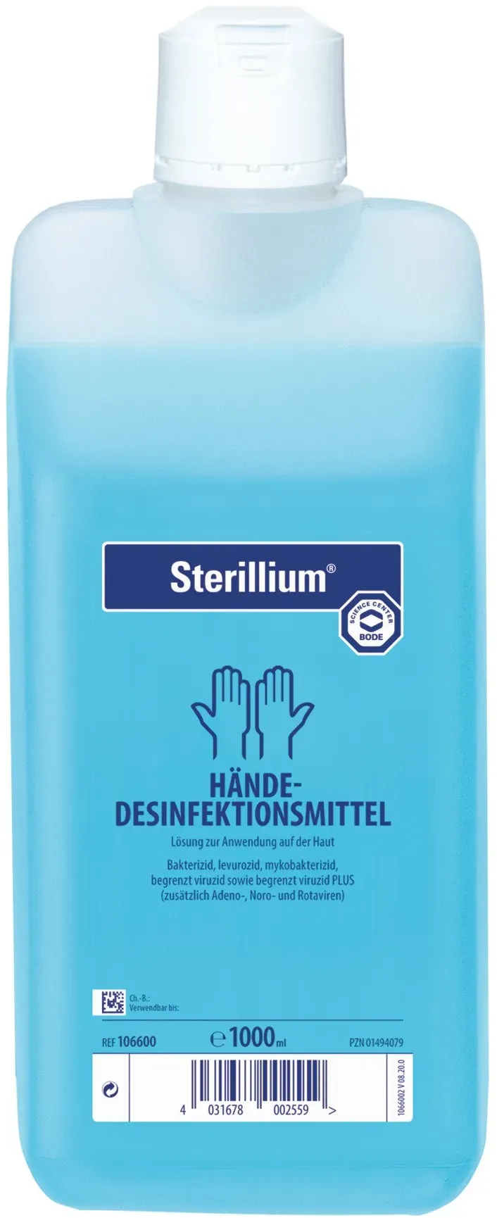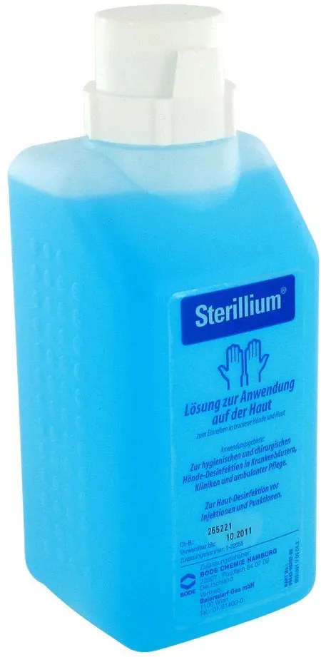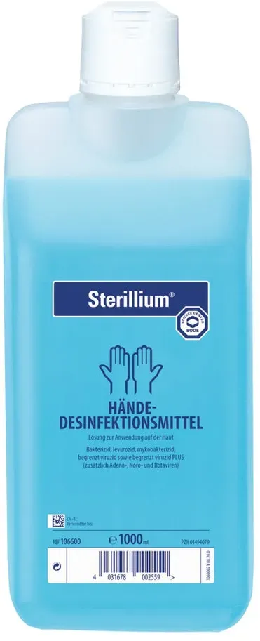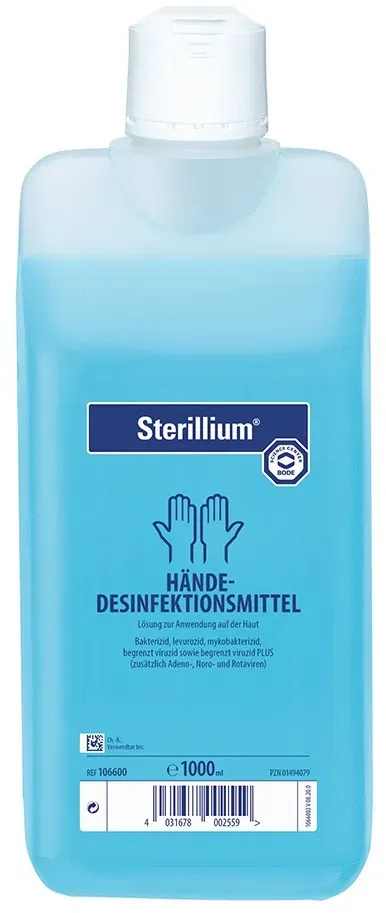 Möchten Sie eine Liste mit aktuellen Preisen und Anbietern für Sterillium Lösung 1000 ml (PZN 01494079)? Jetzt live Suche nach 01494079 starten! 01494079 Angebote aus dem beliebtesten Preisbereich*Durch Käufe über Links zu Händlern kann diese Website eine Provision erhalten, u.a. durch das eBay Partner Network und das AmazonPartnerNet![]() ![]() Hartmann Bode Sterillium 1 L Händesinfektionsmittel zum Einreiben