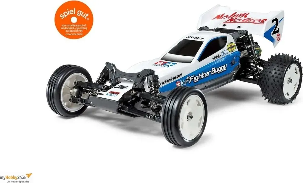 Zustand: Gebraucht - Autos App- & ferngesteuerte Autos - TAMIYA - TAM58587 - EAN: 4950344585878 - Der Tamiya Neo Fighter ist der Nachfolger des absoluten Bestsellers unter den 2WD RC-Buggys, dem legendären Super Fighter G. Der etwas über 1 kg schwere Racing Fighter Buggy im Maßstab 1:10 ist gut 40 cm lang und bietet dank des großen Radstands noch mehr Spurtreue bei schnellen Fahrten. Sein schmales, fast röhrenförmiges DT-03 Chassis beinhaltet gut geschützt Elektronik und Mechanik. Robustheit - Dieser neue Einsteigerrenner bietet optimale Voraussetzungen für Fahrspaß in jedem Gelände. Dabei überzeugt das Modell vor allem im Punkto Qualität und Robustheit. Lieferumfang - Der Lieferumfang beinhaltet ein Bausatzmodell mit ausführlich bebilderter Aufbauanleitung, Elektronischem Fahrtenregler, 540er Elektromotor, Polycarbonat-Karosserie. First in Quality Around the World - So lautet das Versprechen des japanischen Marktführers für Elektronik- und Modellfahrzeuge. Jedes Modell unterläuft einer akribischen Qualitätsprüfung. Seit 1946. - 3 Händler im amazon.de Marketplace Der Tamiya Neo Fighter Buggy ist ein beliebter und preisgünstiger 2WD Buggy Bausatz, ideal für Anfänger im RC-Modellbau. ![]() ![]() Tamiya 1:10 RC Neo Fighter Buggy DT-03 2WD Buggy Bausatz Modell Offroad #300058587