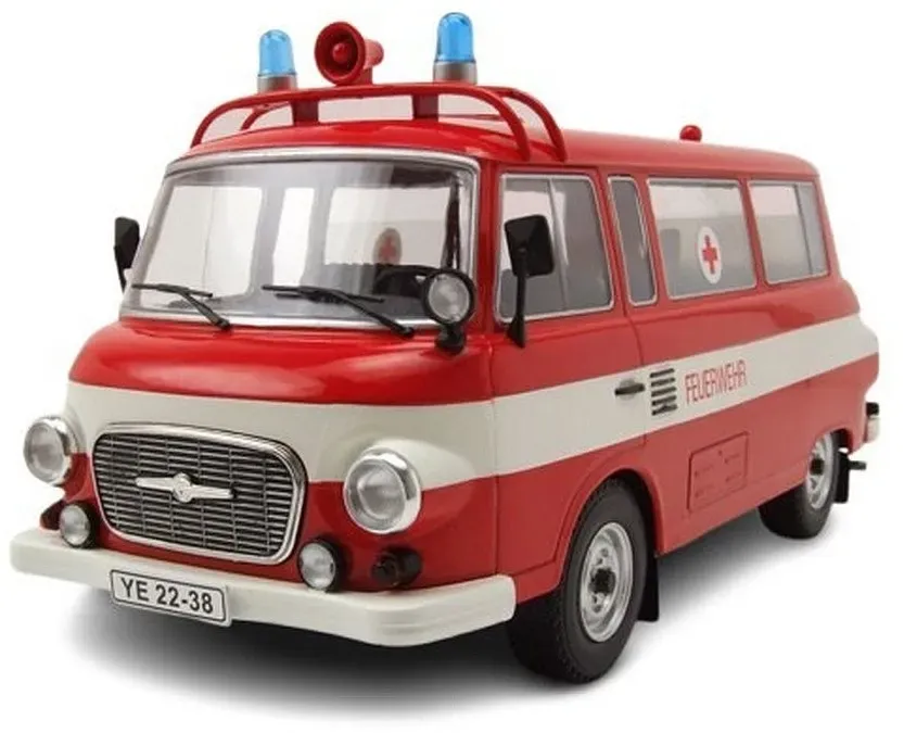 lieferbar-in 2-3 Werktagen bei dirmcg models MCG Modellauto Barkas B 1000 Feuerwehr Ambulanz 1965 rot, Maßstab 1:18 rot