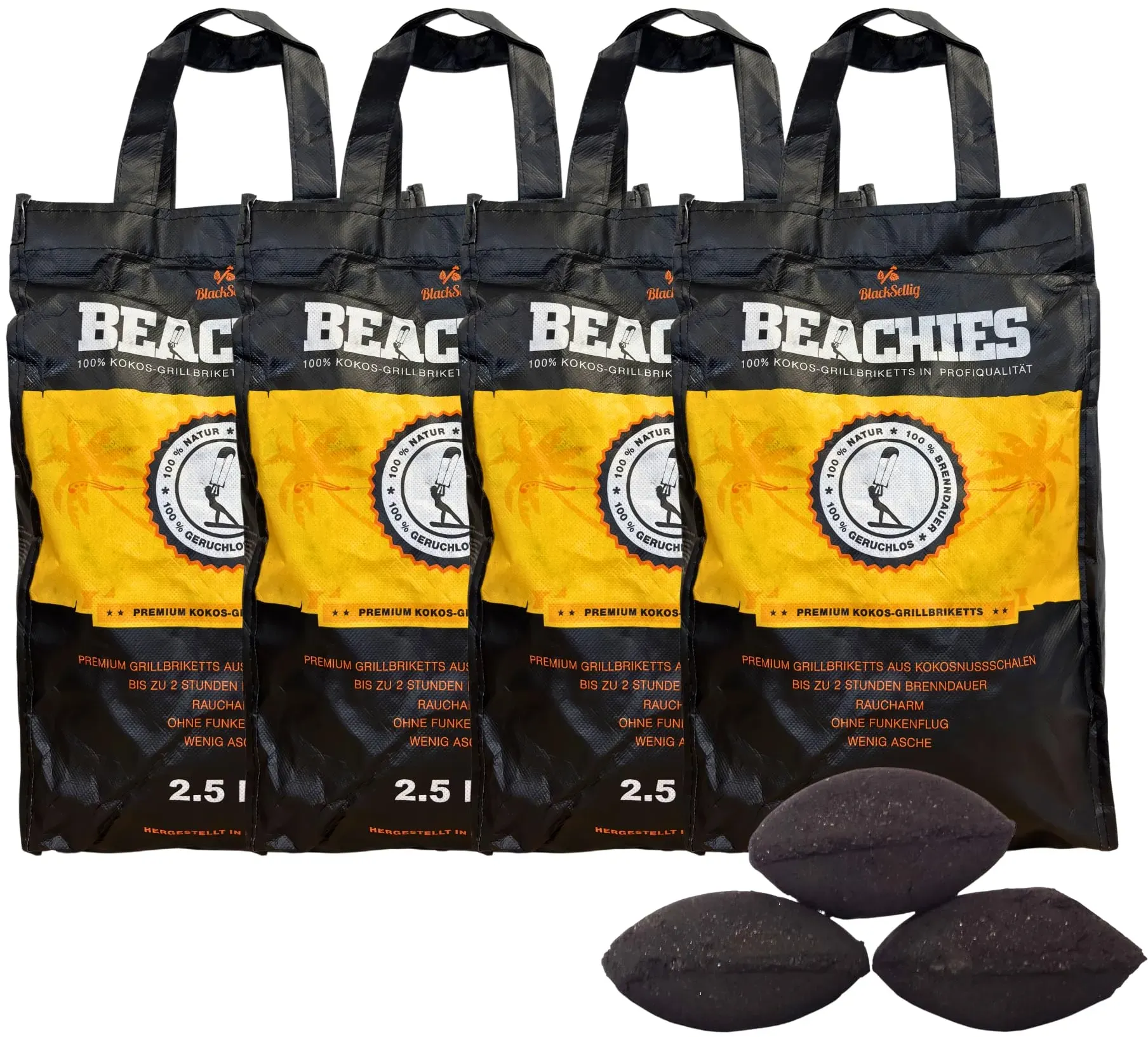 Kategorie: Grillzubehör - Al Duchan - GTIN:4260451942915 - Exklusive BBQ Grillkohle - RUEVE&SöHNE steht für seinen herausragenden Ruf der ihm vorauseilt. Unsere Kohle zeichnet sich durch Festigkeit, wenig Aschebildung, geringe Geruchsentwicklung, sowie KEINEN Eigengeschmack aus. 100% Natur - Die Holzkohle besteht ausschließlich aus natürlichen Kokosnussschalen und ist daher frei von jeglichen künstlichen Zusätzen und Verunreinigungen. Kein Eigengeschmack - Die Kokos Coal Cubes sind Geruchsneutral, verändern nicht den Geschmack und erhalten somit das natürliche Fleischaroma bei. Extra Lange Brenndauer - Mit einer überdurchschnittlich langen Lebensdauer von 2 Stunden steht einem Grillvergnügen nichts mehr im Wege. Großer Inhalt - Das 10 Kilogramm-Paket enthält 640 Würfel Kokosnuss-Grillkohle. Jeder Würfel misst 2,6 x 2,6 x 2,6 cm. - 24,90 Euro bei Amazon Marketplace Home - gefunden von billiger.de BlackSellig Beachies Kokos Grill Briketts für 24.99 Euro sind eine umweltfreundliche und effiziente Wahl für kurze BBQs. ![]() ![]() BlackSellig Beachies 10 kg (4 x 2,5 kg) Kokos Grill Briketts Reine Kokosnussschalen Profiqualität wenig Rauch, heiß & schnell | Für Kurze BBQs