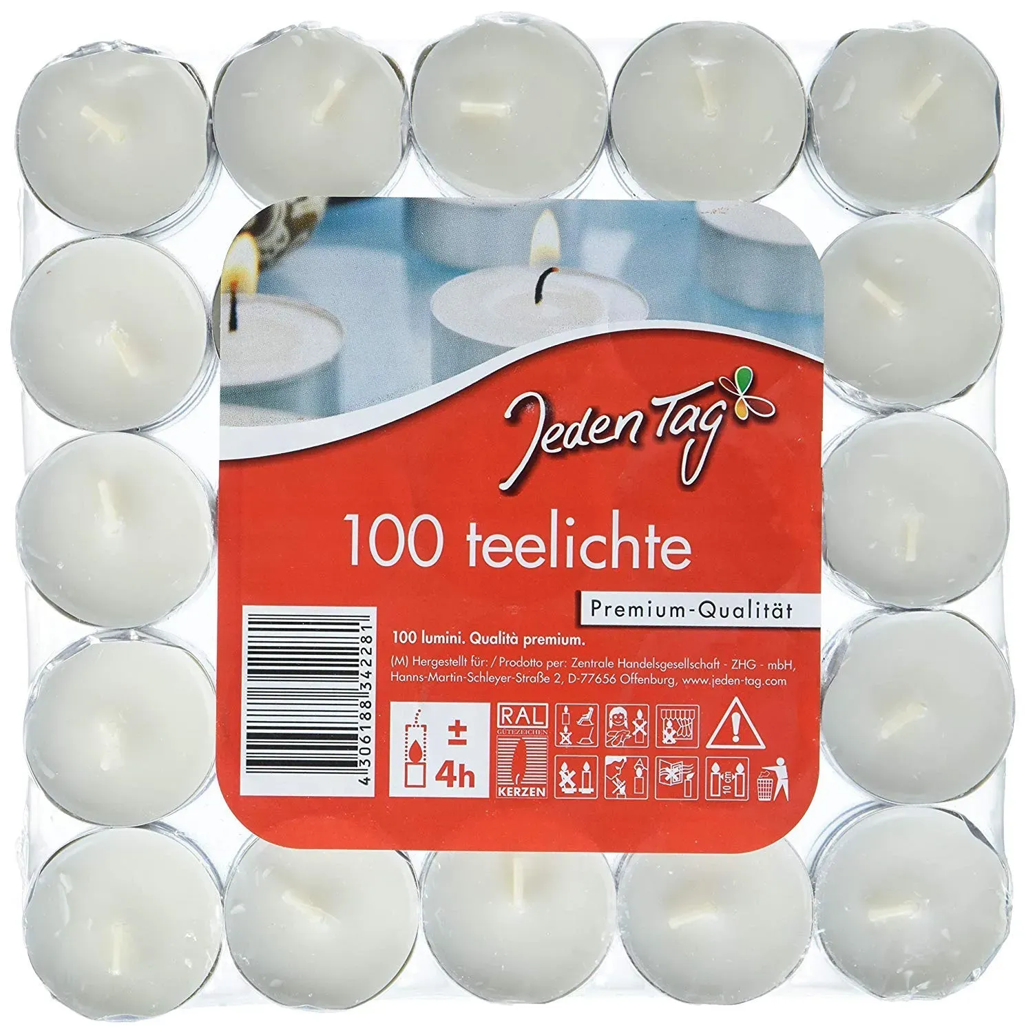 Kategorie: Kerzen - ANWENDUNG: Diese Teelichter eignen sich ideal für den Gastro-Bereich, Events, diverse Partys und Feste, Geburtstage, Weihnachten, Hochzeiten oder einfach Zuhause zur Dekoration. BRENNDAUER: Die Teelichter sind 39 mm (Durchmesser) und 22 mm (Höhe) groß, wodurch eine Brenndauer von ca. 8 Stunden erreicht wird. Dies ist nach dem RAL Gütezeichen 041 zertifiziert. Die Teelichter bieten Ihnen ein ruhiges und gleichmäßiges Abbrennen und können problemlos wiederangezündet werden. MATERIAL, FARBE UND DUFT: Unsere Teelichter sind langbrennend, rußfrei und unbeduftet. Sie sind aus 100% Paraffinwachs hergestellt. LIEFERUMFANG: 100 Stück. Jedes einzelne Teelicht befindet sich in einer praktischen Aluminiumschale. Die Kerzen brennen somit vollständig aus, sodass kein Wachs übrig bleibt. GRATIS-ZUGABE: Sie erhalten zu Ihrer Bestellung Streichhölzer gratis dazu. - 18,99 Euro bei Amazon Marketplace Home - gefunden von billiger.de Gala Premium Teelichter mit 8 Stunden Brenndauer sind eine gute Wahl für längere Beleuchtung. ![]() ![]()