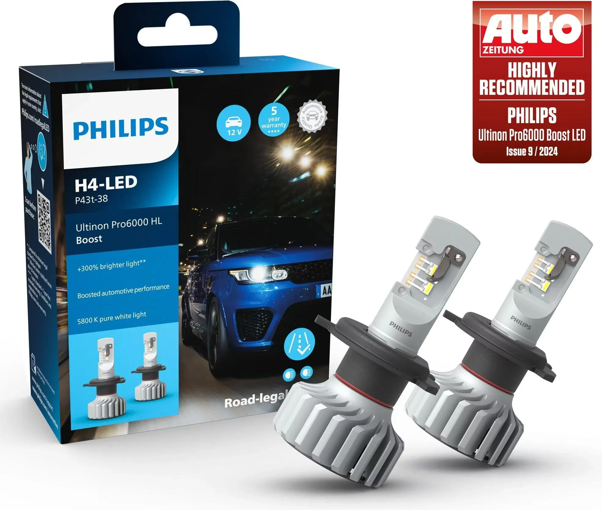 Auf Lager Versand durch AmazonPhilips Ultinon Pro6000 Boost H4-LED Scheinwerferlampe mit Straßenzulassung*, 300% helleres Licht**
