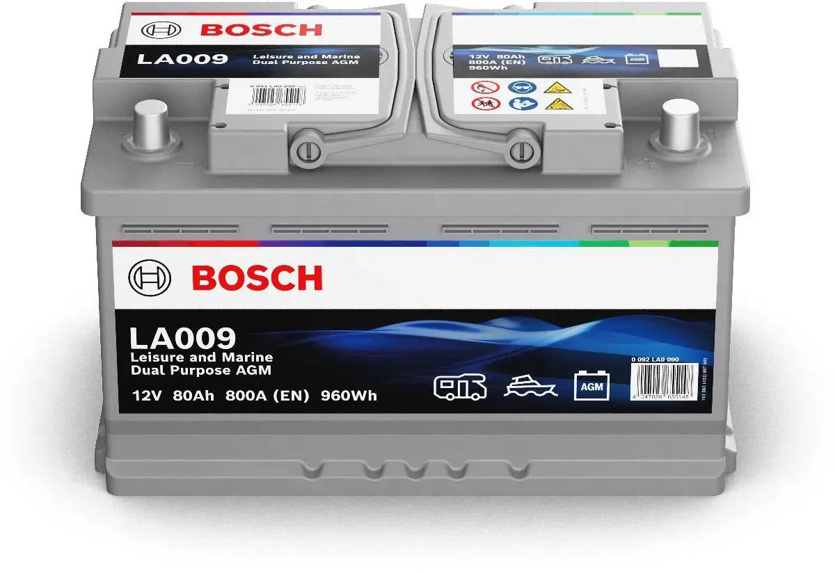 Sofort versandfertig, Lieferzeit 1-3 TageBosch LA009 Dual AGM Starter-, Versorgungsbatterie 12V 80Ah 800A