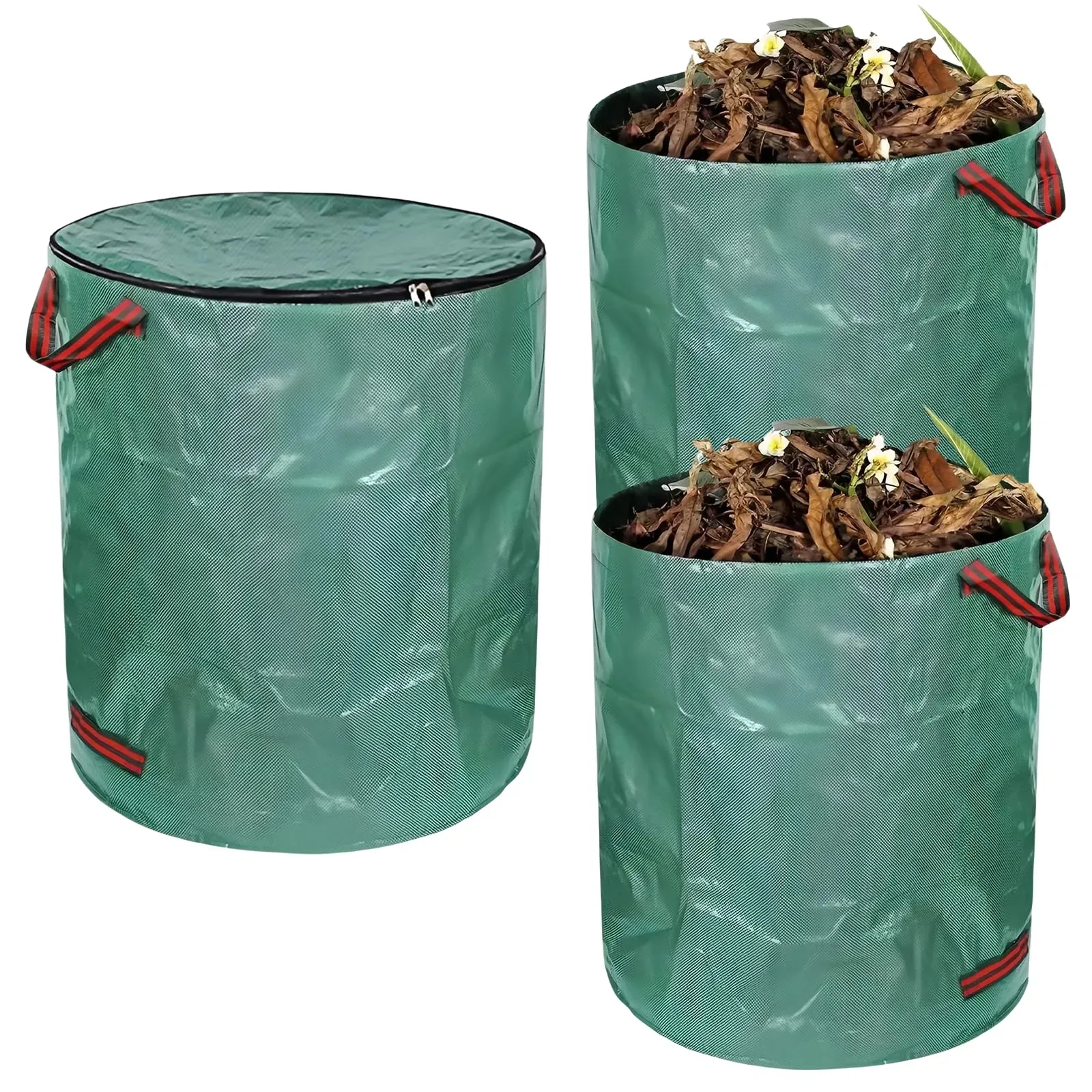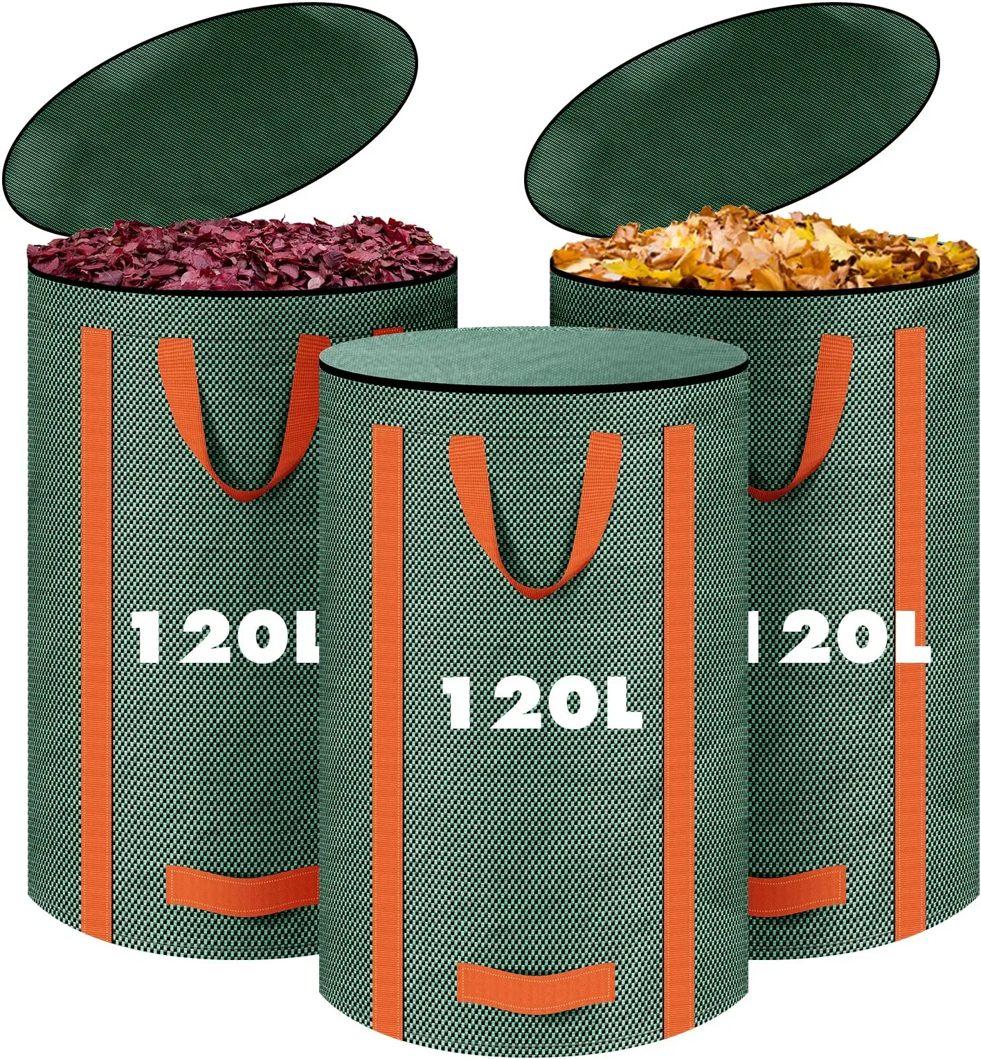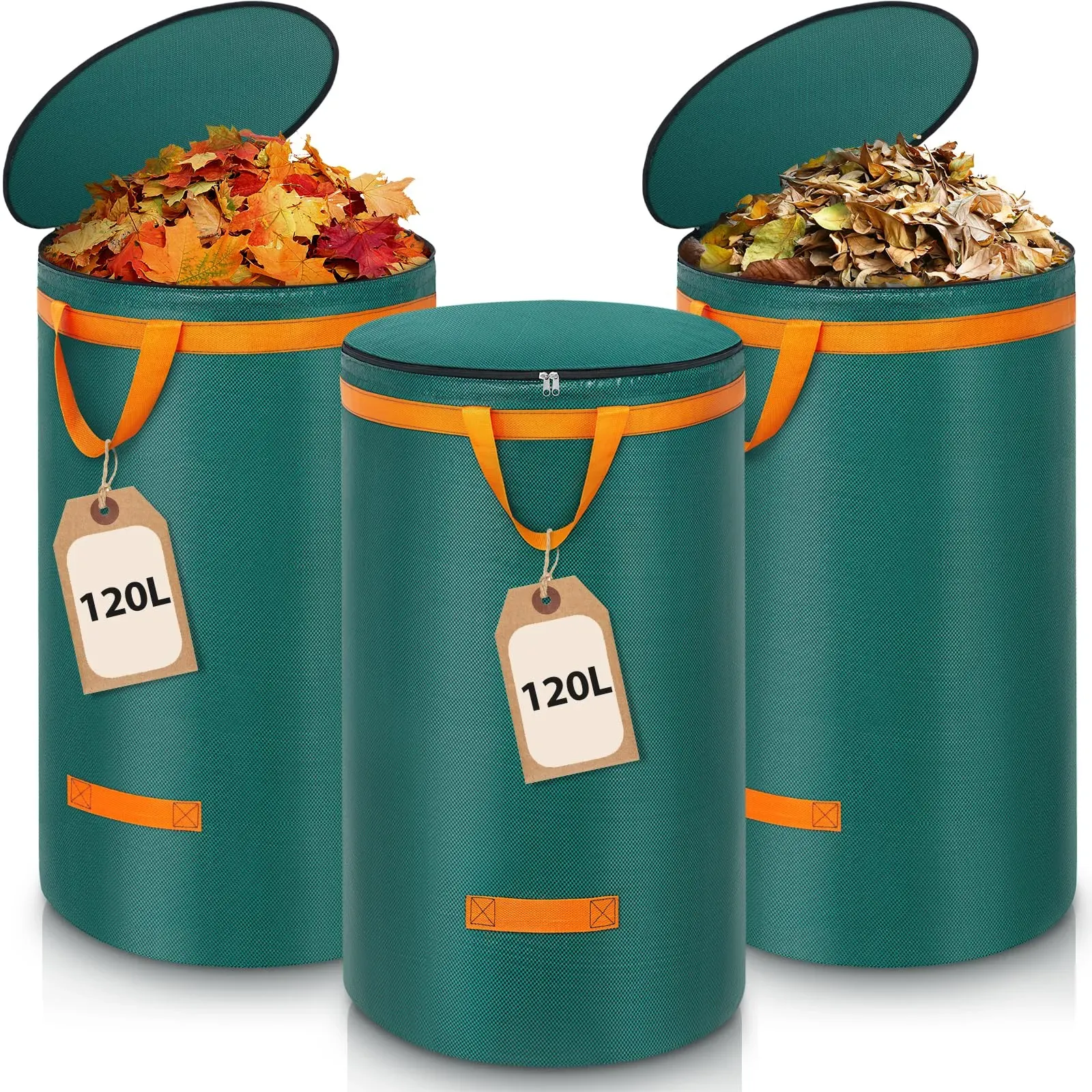 Auf Lager Versand durch AmazonNGOSUET 3 Stück Laubsack 120l mit Deckel, Polypropylen Gartensack Stabil, Gartenabfallsack mit Reißverschluss Deckel, Laubsäcke Garten für Laub, Gras, Gartenabfälle, Grün, 45x76cm