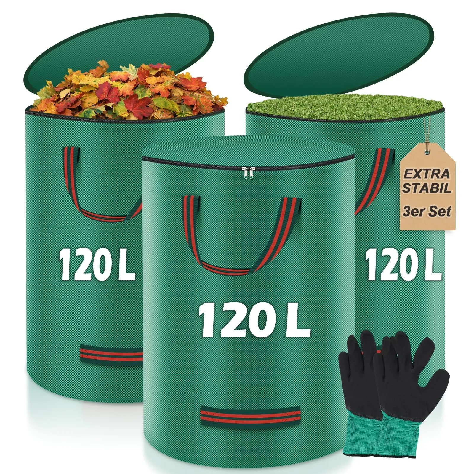 Kategorie: Müllsäcke - plstod - Hochwertige Materialien :Gartenabfallsack pop up besteht aus starkem, reißfestem Polypropylen (PP)-Gewebe, das wasserdicht, langlebig und schmutzabweisend ist und eine hervorragende Haltbarkeit und lang anhaltende Leistung r, Selbst wenn er mit schweren Gegenständen gefüllt ist, müssen Sie sich keine Sorgen machen, dass der Sack reißt oder sich verformt, was Ihnen bei Ihren Gartenreinigungsarbeiten eine starke Unterstützung bietet Design mit großer Kapazität :Sie erhalten 2 gartenabfallsäcke, eine große und eine kleine. Die maximale Kapazität gartensack pop up-Beutels beträgt 272 Liter, Mindestkapazität 120L, was zum Sammeln und Verarbeiten großer Mengen an Grünabfällen, Blättern, Grünschnittsack kann bei Nichtgebrauch leicht zusammengefaltet werden, was die Lagerung erleichtert für platzsparende Lagerung gefaltet werden. Einfach zu bedienen und zu transportieren :Laubsäcke ist mit 4 Griffen ausgestattet (2 oben, 2 unten), und verstärkte Ringe sorgen dafür, dass die Tasche aufrecht steht und offen bleibt, sodass sie leicht zu tragen, zu füllen und zu entleeren, Spülen Sie den garten abfallsack mit Wasser aus oder reinigen Sie ihn mit einem feuchten Tuch und trocknen Sie ihn ab. Sicherheit und Umweltschutz :Dieser Grünschnittsäcke besteht aus umweltfreundlichen Materialien, ist wasserdicht, UV-beständig und wiederverwendbar, wodurch die Verwendung von Einweg-Plastiktüten reduziert wird. Abfallsack garten ist nicht nur langlebig, sondern ... Dieses 3er-Set ist ideal für Nutzer, die mehrere Säcke gleichzeitig benötigen und Wert auf Stabilität und Griffe legen. ![]() ![]() Enbagold 3X 120L Gartenabfallsack Stabil, Laubsack mit Deckel und Griffen Gartensack Groß, Gartenabfallsäcke Gartensäcke Grünschnittsack, Selbststehend Grünschnittsäcke, Abfallsack für Gartenabfälle