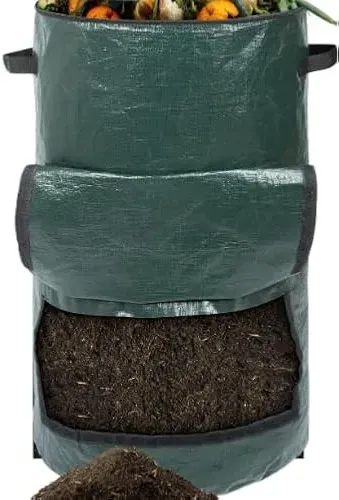 Kategorie: Müllsäcke - mizikuu - GTIN:0768795484343 - Hochwertige Materialien Der Stand up Komposter besteht aus strapazierfähigem Polyethylen, das geruchsneutral, stabil, wasserdicht und reißfest ist. Mit UV-Schutz ausgestattet, gewährleistet er eine langanhaltende Nutzung. Schneller Kompostierungsprozess Unser Gartenkomposter bietet optimale Bedingungen für das Wachstum von Mikroben, was eine schnelle und effiziente Zersetzung organischer Abfälle ermöglicht. Genießen Sie innerhalb kürzester Zeit hochwertigen Kompost. Innovatives Belüftungssystem Der Thermokomposter ist mit einem speziellen Belüftungssystem ausgestattet, das den Sauerstoffgehalt erhöht und den Kompostierungsprozess beschleunigt. Seine dunkle Farbe speichert Wärme, während die strukturierte Innenseite für zusätzliche Isolierung und mikrobiologische Aktivität sorgt. Durchdachtes Design Der Schnellkomposter verfügt über eine praktische Reißverschlussabdeckung an der Oberseite und einen Nylonverschluss an der Unterseite, die das Einfüllen von Abfällen und das Entnehmen von reifem Kompost erleichtern. Umweltfreundlich Der Stand up Komposter fördert das Recycling organischer Abfälle und trägt aktiv zum Umweltschutz bei, indem er Küchen- und Gartenabfälle in nährstoffreichen Dünger verwandelt und somit Abfall reduziert. - 24,36 Euro bei Amazon Marketplace Lawn & Garden - gefunden von billiger.de Dieses 2er-Set zeichnet sich durch seine Stabilität und die Möglichkeit aus, es als Rucksack oder Handheld zu nutzen. ![]() ![]() YTACREA 2X 120L Gartenabfallsack mit Deckel und Griffen, Stabile Faltbar Gartensack Laubsammler, Selbststehend, Groß Laubsack mit Deckel für Gartenabfälle und Grünschnitt, Rucksack, Handheld