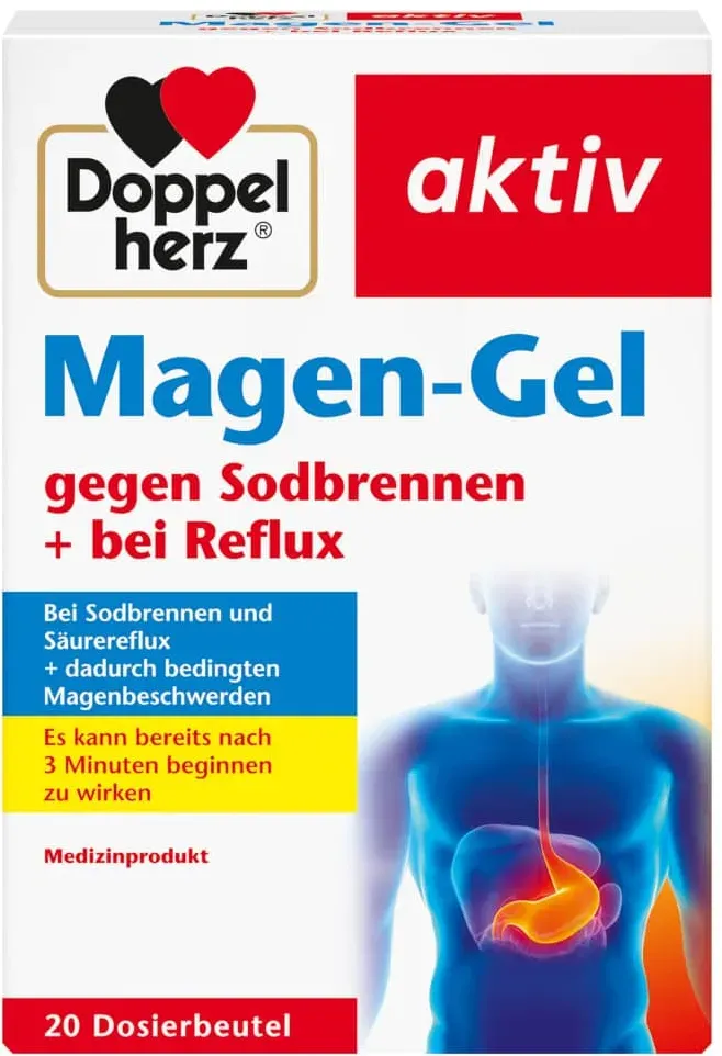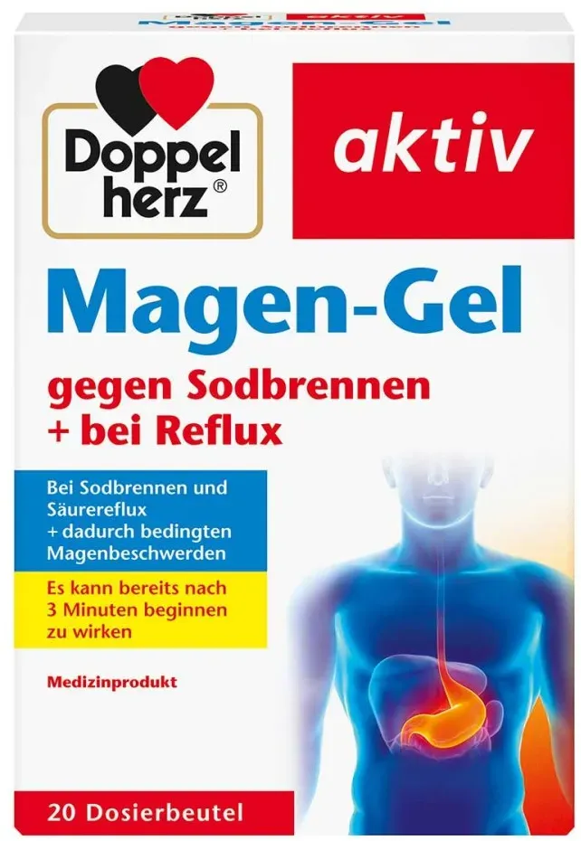 Verfügbarkeit: 1-2 Werktage - 26,25 €/l - Kategorie: Arzneimittel - Queisser - GTIN:4009932004465 - PZN:12359195 - Doppelherz aktiv Magen-Gel 20X10 ml - rezeptfrei - von Queisser Pharma GmbH & Co. KG - Gel - 200 ml - 5,25 Euro bei DocMorris Apotheke - gefunden von billiger.de ![]() ![]() Queisser DOPPELHERZ Magen-Gel gegen Sodbrennen+bei Reflux 20X10 ml