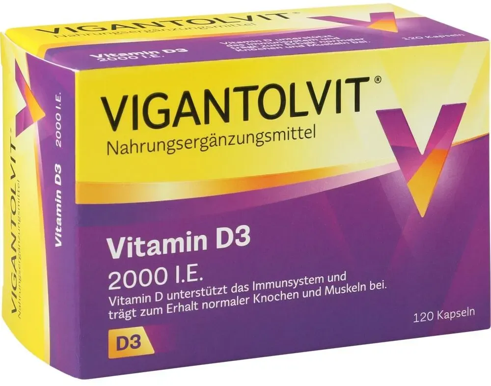 Kategorie: Nahrungsergänzungsmittel - Procter & Gamble - GTIN:4054839544897 - PZN:12423869 - Nahrungsergänzungsmittel sind kein Ersatz für eine ausgewogene, abwechslungsreiche Ernährung und gesunde Lebensweise. Wirkstoff: Colecalciferol Hilfsstoffe: Triglyceride, mittelkettige Ge... - 12,59 Euro bei Mycare - gefunden von billiger.de Ein leicht höheres, aber immer noch gutes Angebot von einer Online-Apotheke. ![]() ![]() Procter & Gamble VIGANTOLVIT 2000 I.E. Vitamin D3 Weichkapseln 120 St.