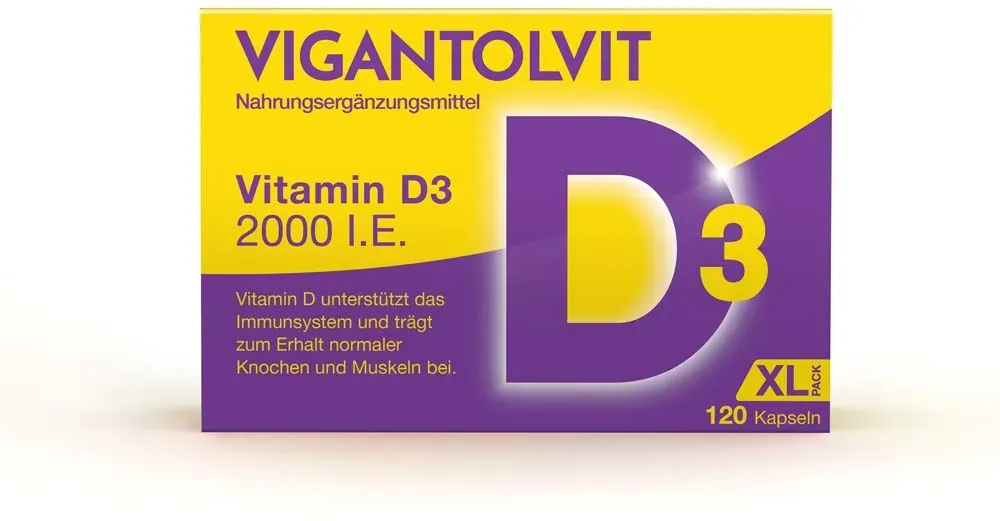 0,09 /Stück - Kategorie: Nahrungsergänzungsmittel - Procter & Gamble - GTIN:8700216618106 - PZN:12423869 - Nahrungsergänzungsmittel sind kein Ersatz für eine abwechslungsreiche und ausgewogene Ernährung und eine gesunde Lebensweise. Entdecken Sie VIGANTOLVIT Ihr Partner für Vitamin D! Vertrauen Sie dem Marktführer für Vitamin D-Produkte1 und profitieren Sie von über 9 n Erfahrung! Mit VIGANTOLVIT 2000 I.E. erhalten Sie ein Nahrungsergänzungsmittel, das speziell für Erwachsene entwickelt wurde. Es versorgt Ihren Körper täglich mit Vitamin D3 für ein aktives Leben!2 Warum ist Vitamin D so wichtig? Vitamin D unterstützt nicht nur Ihr Immunsystem, sondern trägt auch zur Erhaltung normaler Knochen und Muskeln bei.2 Die tägliche Einnahme von Vigantolvit Vitamin D3 2000 I.E. hilft, einen adäquaten Vitamin-D-Spiegel zu erreichen6 , damit Sie Ihre Lieblingsaktivitäten weiterhin genießen können. Unsere kleinen, praktischen Softgel-Kapseln enthalten 2000 I.E. (50 g) Vitamin D3 ideal für die tägliche Einnahme. Zudem sind sie glutenfrei, laktosefrei und frei von Inhaltsstoffen die vom Schwein stammen. Geben Sie Ihrem Körper, was er braucht! Setzen Sie auf Qualität und Erfahrung mit VIGANTOLVIT 2000 I.E. sind Sie bestens versorgt. Holen Sie sich jetzt Ihre Packung und starten Sie in ein aktiveres Leben mit ausreichend Vitamin D!2 1 Nicht verschreibungspflichtige Vitamin-D-Produkte in Apotheken. Insight Health; DatamedIQ, Stand: 08/2024. 2 Vitamin D unterstützt die normale Funktion des ... Ein gutes Preis-Leistungs-Verhältnis von einem Online-Anbieter. ![]() ![]() Procter & Gamble Vigantolvit 2000 I.e. Vitamin D3 120 ST