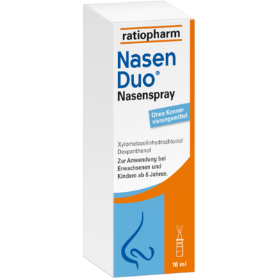 347,00 €/l - Kategorie: Arzneimittel - Ratiopharm - GTIN:4150125215431 - PZN:12521543 - Wirkstoff: Xylometazolinhydrochlorid/Dexpanthenol Zur Anwendung bei Erwachsenen und Kindern ab n. Zur Abschwellung der Nasenschleimhaut bei Schnupfen und zur unterstützenden Behandlung der Heilung von Haut- und Schleimhautschäden (Läsionen), anfallsweise auftretendem Fließschnupfen (Rhinitis vasomotorica) und zur Behandlung der Nasenatmungsbehinderung nach operativen Eingriffen an der Nase. - 3,47 Euro bei medikamente-per-klick.de - gefunden von billiger.de ![]() ![]() Ratiopharm NASENDUO Nasenspray 10 ml