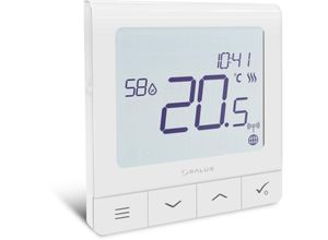- - Salus Digitaler Funkraumthermostat Batterie 112603Vollelektronischer Funkraumthermostat für die Erfassung und Regelung der RaumtemperaturAufputzmontagebesitzt jedoch auch passende Montagelöcher auf die Unterputz Wanddosespeziell entwickelt für die Regelung von wassergeführten Fußbodenheizungender Funkraumthermostat kommuniziert über den Koordinator (im Lieferumfang von 132801 enthalten)Ideal für die Renovierung - erhöht den Wohnkomfort erhebliches sind keine Stemm- oder Malerarbeiten notwendigbesitzt zusätzlich einen Wifi-Chip und kann somit jederzeit in das Smart Home System integriert werdenVoraussetzung hierfür ist das Universelle Gateway (optional)im Funkbetrieb ist der Raumthermostat völlig geräuschlos und damit ideal für Wohn- und Schlafräumeautomatisches Umschalten von Heizen auf Kühlen über den CO-Eingang der Klemmleiste 132801wer mit Wärmepumpe heiztkann häufig damit auch kühlen und die Wohnraumtemperatur um bis zu 5 K reduzierendas Kühlsignal kann in der Programmebene inaktiv gesetzt werdendies wird häufig in Badezimmer genutztneben den 2 einstellbaren Temperaurniveaus (Wohlfühltemperatur und Nachtabsenkung)kann auch noch die Frostschutzfunktion gewählt werdendieser Raumthermostat zeichnet sich durch eine dauerhaft präzise Erfassung und Regelung der Raumtemperatur ausdie Regelabweichung von +/-05 K bleibt während der ganzen Betriebsdauer konstantoptional kann eine energiesparende Pulsweitenmodulation gewählt werdendiese erhöht zusätzlich den Wohnkomfortda ein ... ![]() Salus ultraflacher Raumthermostat 113610 Unterputz 230V mit großem Display