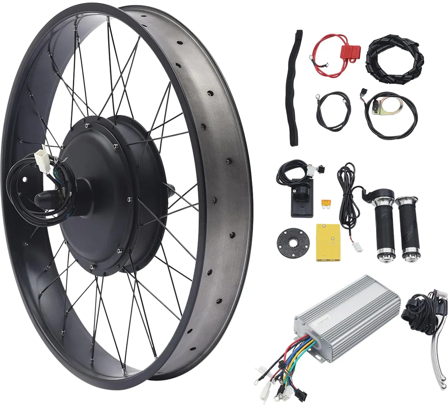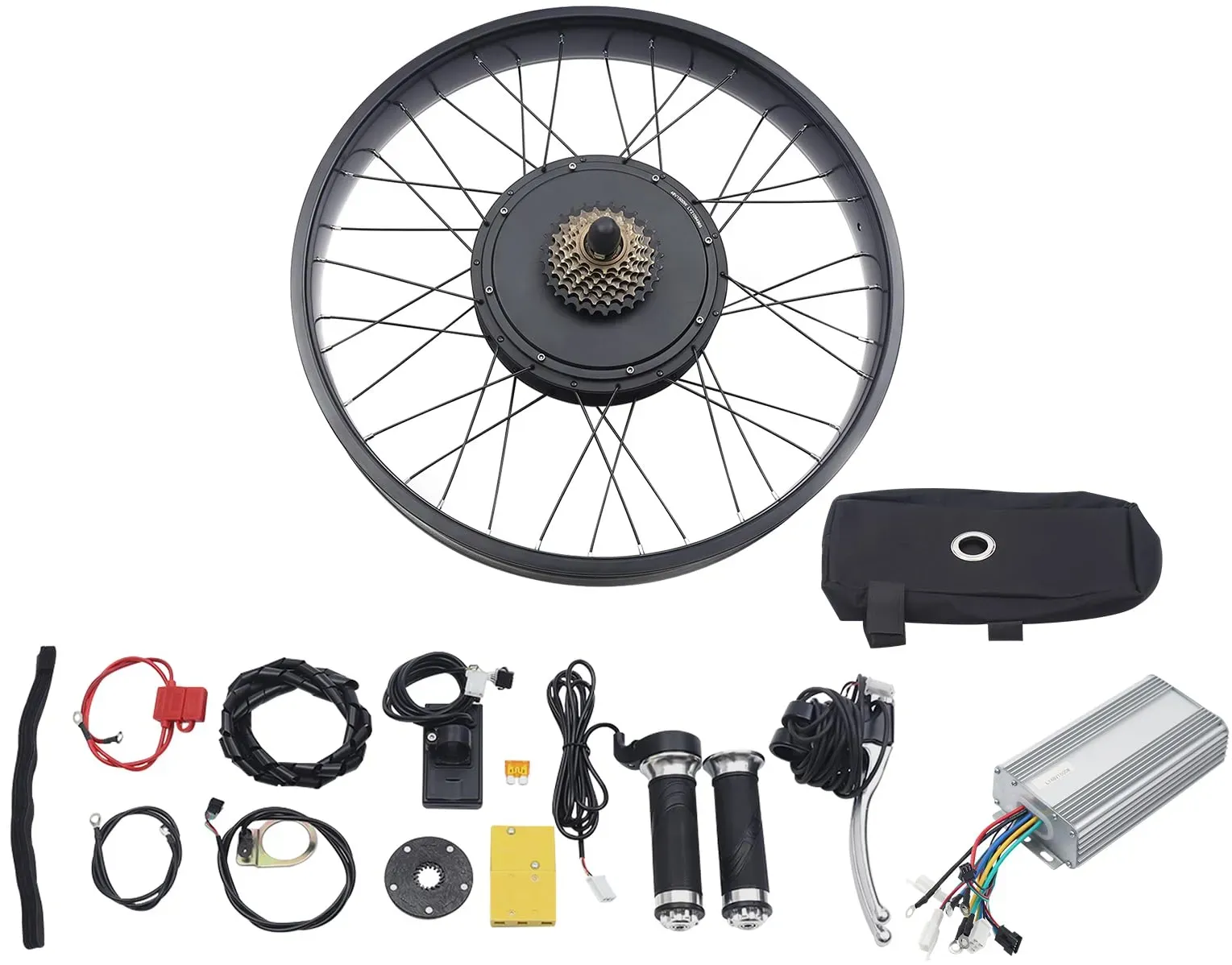 Verfügbarkeit: Auf Lager - Kategorie: Zubehör für Motorroller & Quads - huspoo - GTIN:0747495554723 - Hochwertiges Material: Das Motorrad besteht aus leistungsstarkem Aluminium, das robust und langlebig ist. Alle Teile des Umrüstsatzes sind hochwertig verarbeitet, was sie sicher und langlebig macht. Hohe Leistung: Dieses Produkt ist mit einem bürstenlosen und zahnlosen 1500-W-Getriebemotor ausgestattet, der leistungsstark ist und Geräusche reduziert. Mit einer maximalen Motordrehzahl von 55 km/h im Leerlauf können Sie das aufregende Erlebnis des Fahrens mit hoher Geschwindigkeit genießen. Leistungsstarker Controller: Dieses Produkt ist mit einem leistungsstarken Controller ausgestattet, der das Gehirn des Elektrofahrrads ist und den reibungslosen Betrieb der anderen Komponenten gewährleistet. Er kann Ihnen beim Fahren helfen, die Reichweite verdoppeln und den Fahrvorgang erleichtern! Zwei Arten von Lenkern: Dieser Fahrrad-Umrüstsatz wird mit zwei Arten von Lenkern geliefert. Zusätzlich zum normalen Lenker gibt es einen Bremshebel mit Abschaltfunktion, der Ihnen doppelte Sicherheit rt. Vielfältige Funktionen: Dieses Produkt verfügt über eine fünfstufige Geschwindigkeitsregelung und eine Festgeschwindigkeits-Cruise-Funktion. Es bietet Ihnen ein noch nie dagewesenes Fahrerlebnis. Das LCD-Display zeigt Geschwindigkeit, Kilometerstand, Leistung und Fehler an, sodass Sie den Status des Fahrrads rechtzeitig erfassen können. - 198,89 Euro bei Amazon Marketplace ... Ein weiteres umfassendes Umbauset für 26 Zoll Hinterräder, ideal für Fatbikes, das eine hohe Leistung und einfache Installation verspricht. ![]() ![]() duosamy 26 Zoll Elektrofahrrad Motor Umbausatz Electric Bicycle Conversion Kit Fat Reifen E-Bik Fahrradumbaukit 1500 W 48V Hinterradnabe Motor Rad
