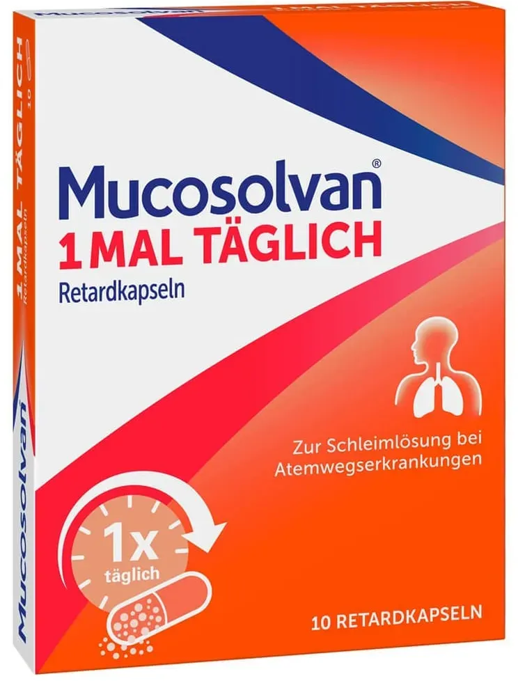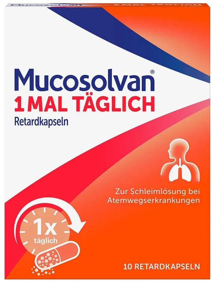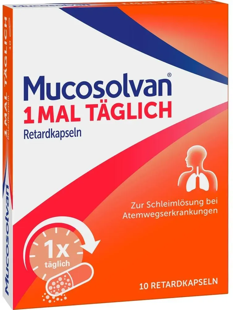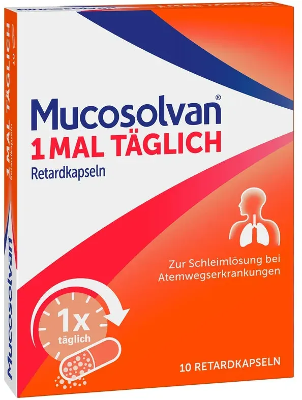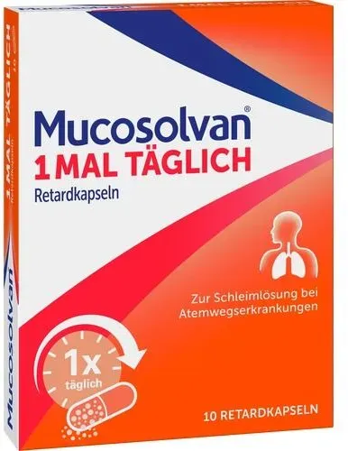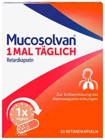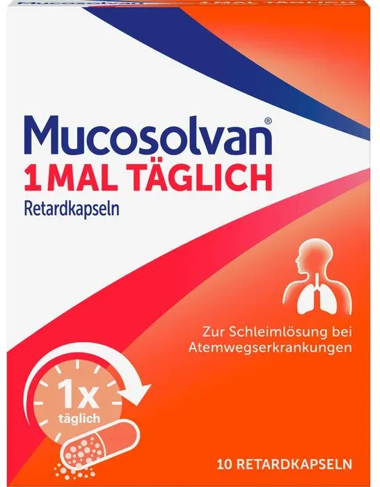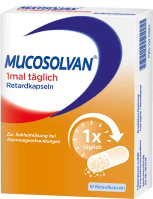 Zur Anwendung bei Erwachsenen und Jugendlichen ab 1 n Wirkstoff: Ambroxolhydrochlorid. Anwendungsgebiete. Zur Schleim lösenden Behandlung bei akuten und chronischen Erkrankungen der Bronchien und der Lunge mit zähem Schleim. - bei ipill.de - aus Yadore Produktdaten ![]() ![]() A. Nattermann & Cie. GmbH MUCOSOLVAN 1mal täglich Retardkapseln 10 St.