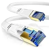 Auf Lager Versand durch AmazonCSL - 15m CAT 8 Netzwerkkabel Flach und Dünn - Lan Kabel für 40 Gigabit High Speed, Internetkabel, Flachbandkabel, Verlegekabel - 40 Gbps Cat.8 RJ45 Kabel für Switch Router Modem PC, 15 Meter Weiss