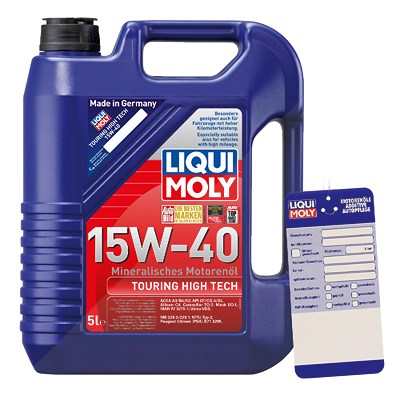 6,2€/l - Der angezeigte Preis könnte seit dem letzten Update gestiegen sein - EAN: 4055543879794 - Castrol 5 L GTX 15W-40 A3/B3 + ölwechsel-Anhänger (15F629) - Technische Informationen: Inhalt: 5 Liter | Mit Double Action Formula Technologie | Für Benzin- und Dieselmotoren | Besserer Schutz vor Schwarzschlamm]. Einschränkungen: Verwendbar... - Zustand: NEW - bei ATP Autoteile GmbH - gefunden von Buycentral Liqui Moly Touring High Tech ist ein beliebtes Markenöl, das für seine gute Qualität und breite Anwendbarkeit bekannt ist. ![]() ![]() LIQUI MOLY Touring High Tech 15W-40 5L