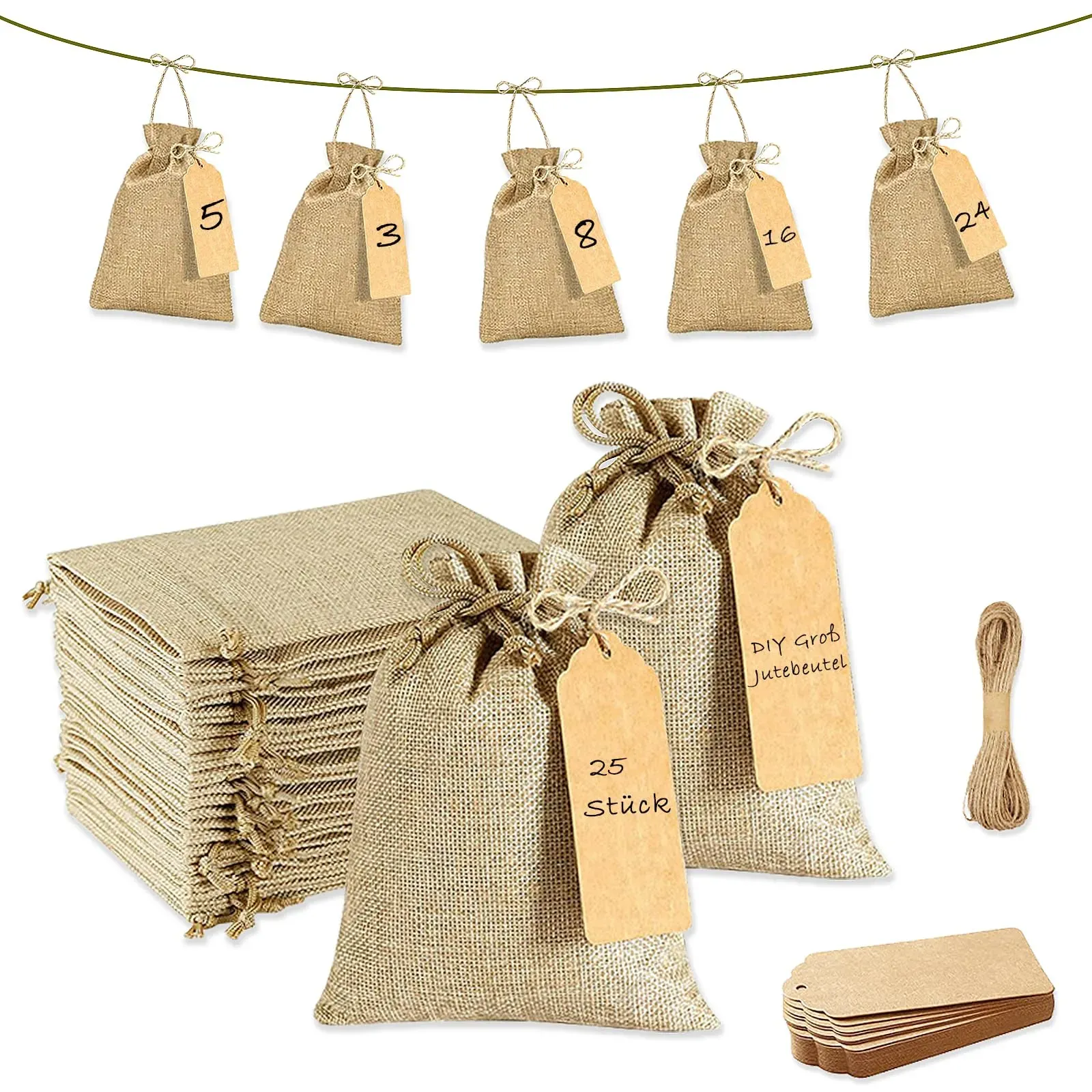 Verfügbarkeit: Auf Lager - Kategorie: Adventskalender - odiuk - GTIN:5061015651897 - Große Jutebeutel: Sie erhalten 25 Jutesäckchen mit 15 x 20 cm Größe, 25 Etiketten und 10 Meter Seil, die Sie selbst machen können, wie Sie möchten, ideal für Geschenkverpackungen / Geschenktaschen, um einen überraschungseffekt für besondere Anlässe zu bringen. Wiederverwendbares Material: UnserJute Beutel ist aus Leinenfasern hergestellt, das Material ist bequem atmungsaktiv, nicht leicht zerbrechbar, reinigbar (handwäschbar), die klassische Hauptfarbtasche ist ideal für alle Gelegenheiten und kann für viele Jahre wiederverwendet werden. Drahtdesign: Stoffsäckchen zum befüllen sind mit Drag-Design ausgestattet und können leicht geöffnet oder geschlossen werden. Nach dem Ziehen des Seils wird die Sache in der Tasche nicht leicht herausfallen, um zu verhindern, dass die Sache verschmutzt und verloren geht, einfach zu verwenden Hausgemachte überraschung: Die jutesäcke adventskalender sind blickdicht und schützen somit die Geheimnisse, die Taschen können verwendet werden, um Kekse, Spielzeug, Schokolade, Schmuck, Weihnachtsmann-Dekoration, Wunschbriefe oder andere kleine Geschenke zu verpacken, ideal für Weihnachten! Vielfältige Anwendungen: Diese Leinentaschen mit Ziehseil können als Weihnachtskalenderfüllung verwendet werden und eignen sich auch für Halloween, Thanksgiving, Hochzeiten, Familienlagern, Reisen, Geburtstag, Partys, Brautgeschenke, handgefertigte ... Diese bunten Organzasäckchen eignen sich hervorragend als Schmuckbeutel oder für kleine Geschenke. ![]() ![]() SOMFIUI 15x20cm Bunt Organzasäckchen,50 Stück Säckli Beutel Geschenk Schmuckbeutel