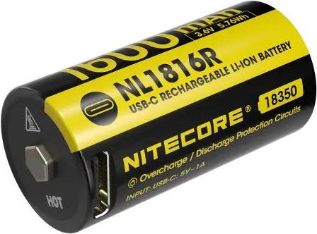Verfügbarkeit: Auf Lager - Kategorie: Batterien & Akkus - pureultra - GTIN:6976366490233 - œ Hohe Kapazität: 1200mAh bei 3.7V €“ liefert zuverlässige Energie für Taschenlampen, Controller und mehr. œ Integrierte PCB-Schutzschaltung: Schützt vor überladung, überhitzung und Kurzschluss €“ für maximale Sicherheit. œ Langlebig & wiederaufladbar: Entwickelt für über 500 Ladezyklen €“ stabile Leistung und nachhaltige Nutzung. œ Universelle Kompatibilität: Ideal für Geräte mit 18350-Formfaktor €“ einfach austauschbar und vielseitig einsetzbar. œ Qualität von PureUltra: Robustes Design mit strenger Qualitätskontrolle für verlässliche Performance in jeder Situation. Max. Abmessungen: ca. Ø18.7 mm × 38.9 mm - 10,95 Euro bei Amazon Marketplace CE - gefunden von billiger.de Dieser Nitecore Akku bietet eine hohe Kapazität von 1600mAh und den Komfort eines integrierten USB-C Ladeanschlusses. ![]() ![]() Nitecore Li-Ion NL1816R 18350 Akku, mit USB-C-Ladeanschluss, 3,6V 1600mAh