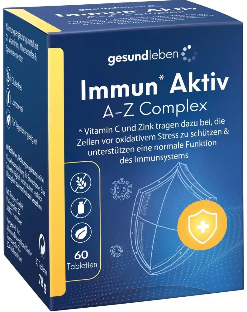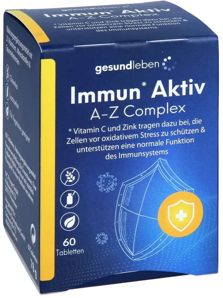 Verfügbarkeit: 2-4 Werktage - 0,06 €/Stück - Kategorie: Arzneimittel - Alliance Healthcare Deutschland GmbH - GTIN:4150187716723 - PZN:18771672 - Gesund Leben Immun Akt A-z Tabletten 60 Stück - von Alliance Healthcare Deutschland GmbH - Kategorie: Abwehrstärkung - Versand: 2,95 €, ab 18 € versandkostenfrei - 3,89 Euro bei healthii - gefunden von billiger.de ![]() ![]() Alliance Healthcare Deutschland GmbH GESUND LEBEN Immun Aktiv A-Z Complex Tabletten 78 g 18771672
