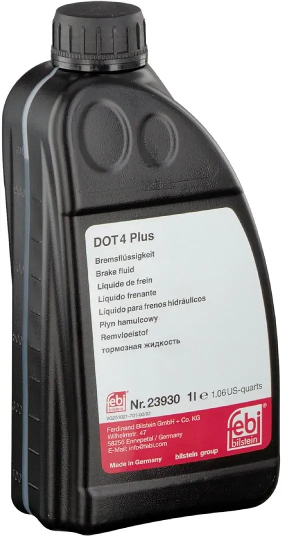 3 Händlerangebote bei billiger.de - Kategorie: Autoteile - Valeo - DOT Spezifikation: DOT 4, Chemische Eigenschaften: Synthetisch, Gehalt (Liter): 1, Trockensiedepunkt [ C]: 245, Verpackungsart: Flasche Die VALEO Bremsflüssigkeit DOT 4 wurde für Fahrzeuge mit ABS, ESP und hydraulischem Kupplungssystem entwickelt, Zugelassene Formel VALEO PRODUKT: Hervorragende Qualität: die Leistungen erfüllen oder übertreffen die Norm (Siedepunkt und Viskosität) Valeo verpflichtet sich, bis 2050 klimaneutral zu werden und wird dieses Ziel 2030 bereits zu 45 % erreicht haben So können Sie unsere Verpackung verwenden und wiederverwenden Valeo bevorzugt Produktionsprozesse mit minimalen Auswirkungen auf Umwelt und Biodiversität sowie umweltfreundliche Abfallbehandlung und Vertriebsprozesse. - GTIN:3276424024039 Die FEBI BILSTEIN DOT4 PLUS für 6.87 Euro bietet eine verbesserte DOT4-Qualität zu einem sehr attraktiven Preis. ![]() ![]() Bremsflüssigkeit FEBI BILSTEIN DOT4 PLUS 23930 1L