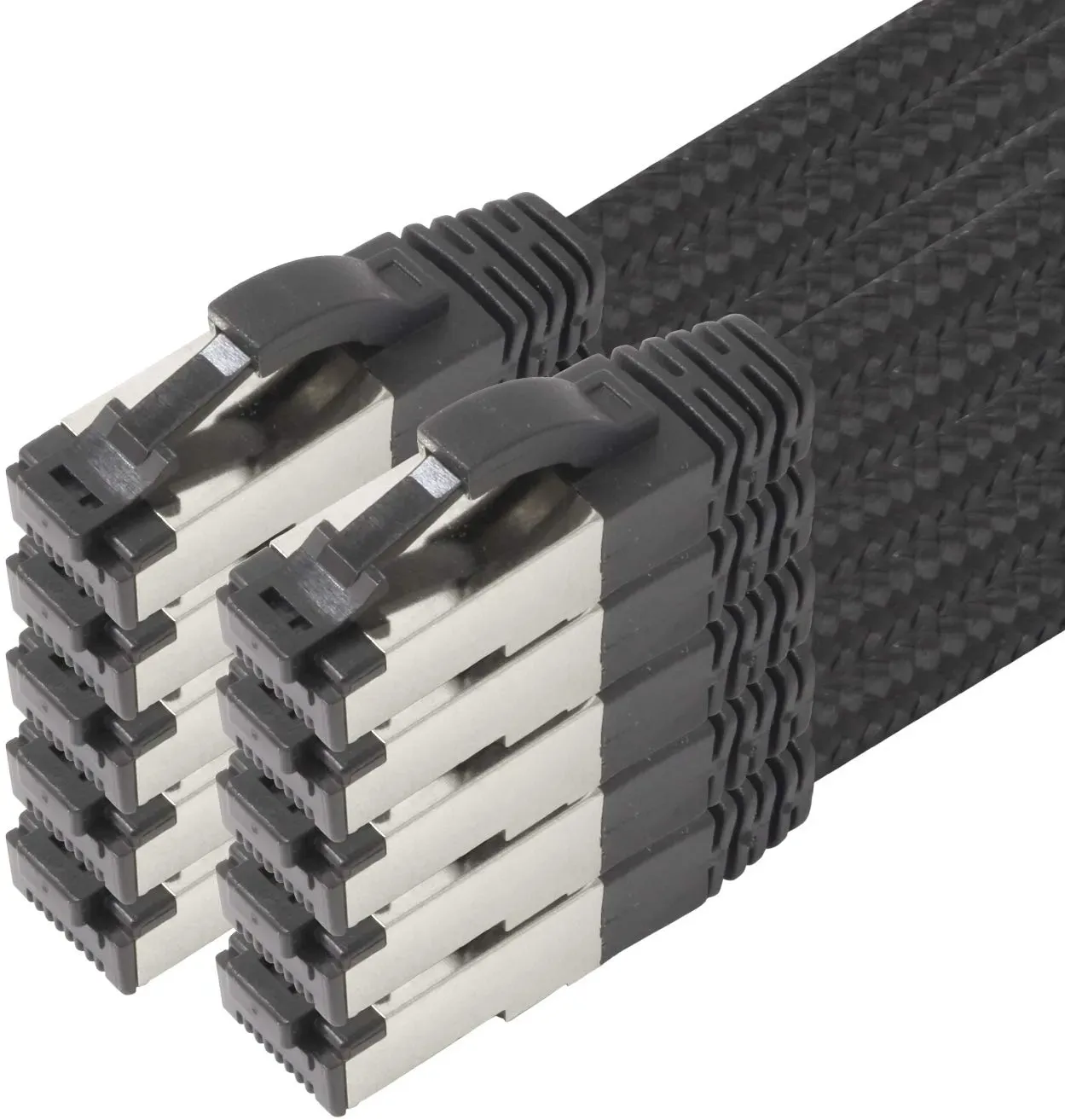 Auf Lager Versand durch Amazon1aTTack.de 1m - Black Cotton CAT 6a Patchkabel Schwarz - 10 Stück Netzwerkkabel Stoff Baumwollmantel Cat Cat 6 a Kabel Rj 45 LAN Ethernet Patchkabel 500Mhz 10 Gb s - 10 x 1 Meter
