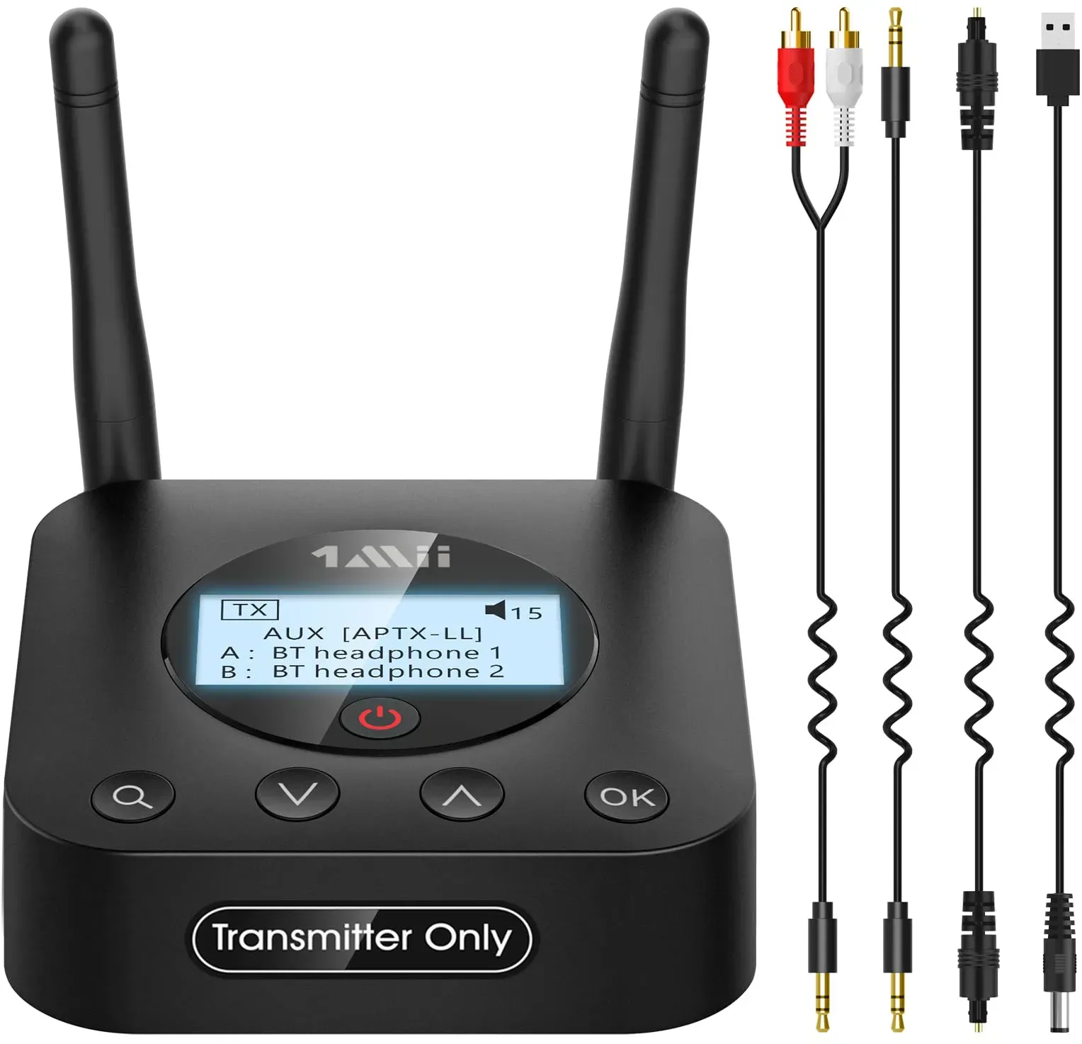 Auf Lager Versand durch Amazon1Mii B06TX+ Bluetooth 5.2 Transmitter mit großer Reichweite, aptX HD & Low Latency Kabellos Audio Sender mit Bildschirmanzeige für TV/PC/Projektor an 2 Bluetooth-Kopfhörer/Lautsprecher