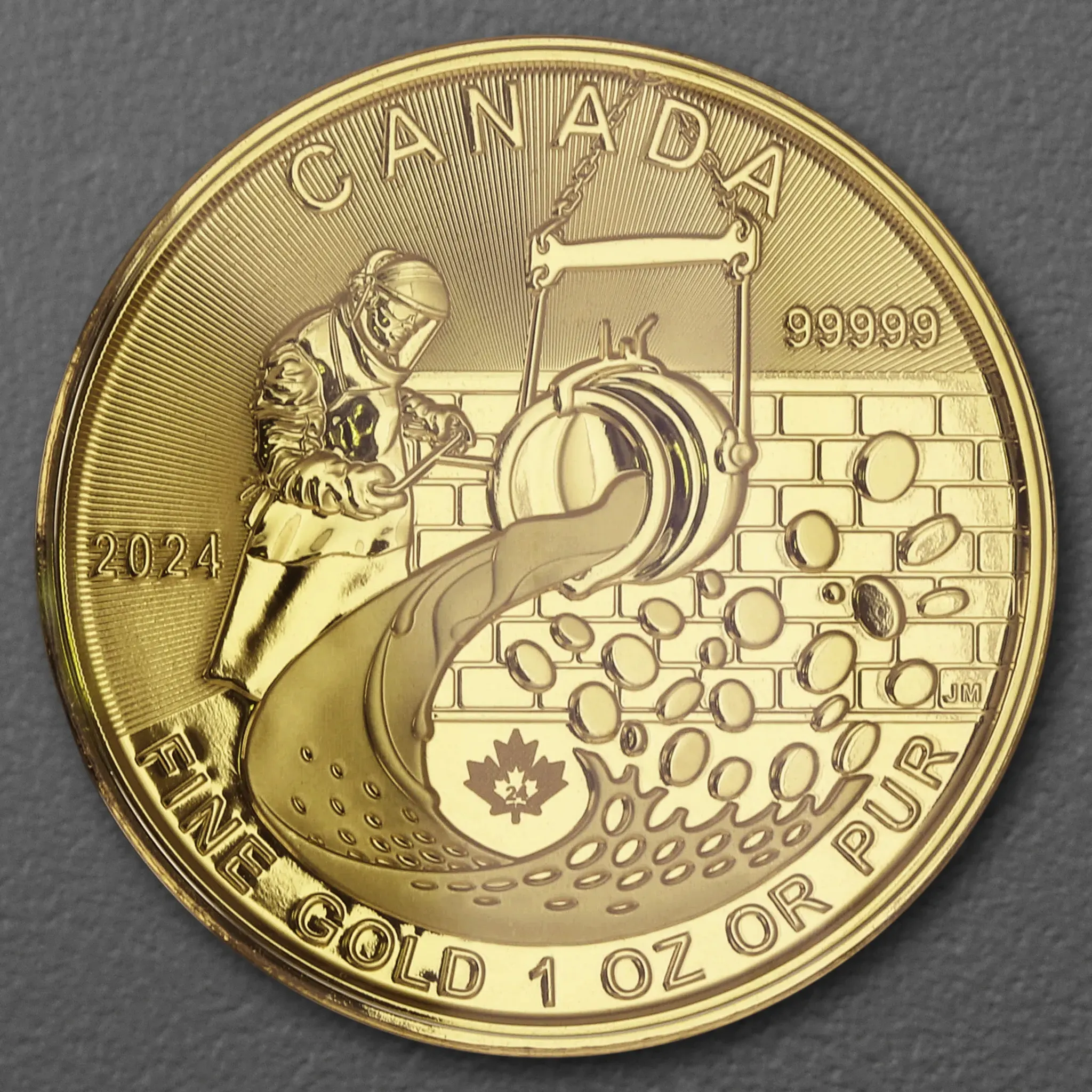 Kategorie: Münzen & Scheine - Royal Canadian Mint - Goldmünze 1oz From Dore to Refined Gold 2024 Klondike Gold Rush (Kanada) Die Anlagegoldmünze mit dem außergewöhnlichen Feingehalt von 99.999% Gold ist dem Klondike-Goldrausch von 1896-1899 gewidmet. Die Bildseite der kanadischen Münze soll das Goldraffinierungsverfahren veranschaulichen. Zu sehen ist geschmolzenes Gold welches aus einem Schmelzbehälter fließt. Es geht in ein Metallblech über und anschließend wird es zu Münzrohlingen aus reinem Gold geschnitten. Dies wird durch das Blech mit runden Löchern und losen Rohlingen verdeutlicht welche über die rechte Münzhälfte fliegen. Zwischen den Verarbeitungsstufen des Goldes befindet sich ein strukturiertes Ahornblatt mit der Zahl 24 in der Mitte als Sicherheitsmerkmal. Im Hintergrund ist eine Mauer zu sehen vor welcher ein Arbeiter in Schutzkleidung steht. Oben mittig steht vor einem strahlenförmigen Hintergrund CANADA rechts über der Mauer ist der Feingehalt von 99999 zu finden und links befindet sich mittig das Ausgabejahr 2024. Der Hintergrund aus präzisen radialen Linien gilt als Sicherheitsmerkmal. Unten schließt sich an die Rundung der Münze die Aufschrift FINE GOLD 1OZ OR PUR an. Die Kehrseite ist mit einem strahlenförmigen Hintergrund versehen. Mittig befindet sich das Konterfei von Charles III. Umgeben ist er von der Legende CHARLES III D G REX und dem Nennwert von 200 Kanadischen Dollar. Die Münze befindet sich in einer illustrierten Karte. Sie zeigt vorne ... Der C.Hafner Goldbarren ist eine gute Wahl für Anleger, die einen LBMA-zertifizierten Barren von einem deutschen Hersteller bevorzugen. ![]() ![]() Goldbarren 1 - Unze/oz Gold eBay 999.9 C.Hafner gegossen, LBMA Zertifiziert