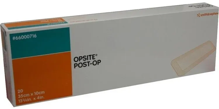3,96 /Stück - Kategorie: Arzneimittel - Smith & Nephew - GTIN:4150014475076 - PZN:01447507 - Produkteigenschaften: Opsite POST-OP - transparente, wasserdichte Wundverbände Ein postoperativer Folienverband mit geringem Allergiepotenzial, einer verklebungsarmen absorbierenden Wundauflage und einer Folie mit Bakterienbarriere, die dazu beitragen kann, Inzisionen vor Infektionen der Operationsstelle zu schützen. Produkteigenschaften: Wasserdampfdurchlässig: Eine hohe Wasserdampfdurchlässigkeit (Moisture Vapor Transmission Rate, MVTR) trägt dazu bei, dass überschüssige Feuchtigkeit verdunstet. Schützt: Bietet eine Barriere gegen Bakterien und Kontamination von außen, die dazu beitragen kann, das Infektionsrisiko zu minimieren. Wasserdicht: Ermöglicht dem Patienten das Duschen. Tragekomfort: Die verklebungsarme Wundkontaktschicht trägt dazu bei, den Patientenkomfort zu erhöhen und die Verbandentfernung zu erleichtern. Quelle: www.smith-nephew.com Stand: 01/2024 - 79,25 Euro bei onfy.de - gefunden von billiger.de Für 90,16 Euro erhalten Sie hier einen 10x35cm Verband, der sich für sehr große Wunden eignet. ![]() ![]() Opsite Post-Op - Verbände 10 eBay cm x 35 cm x 20