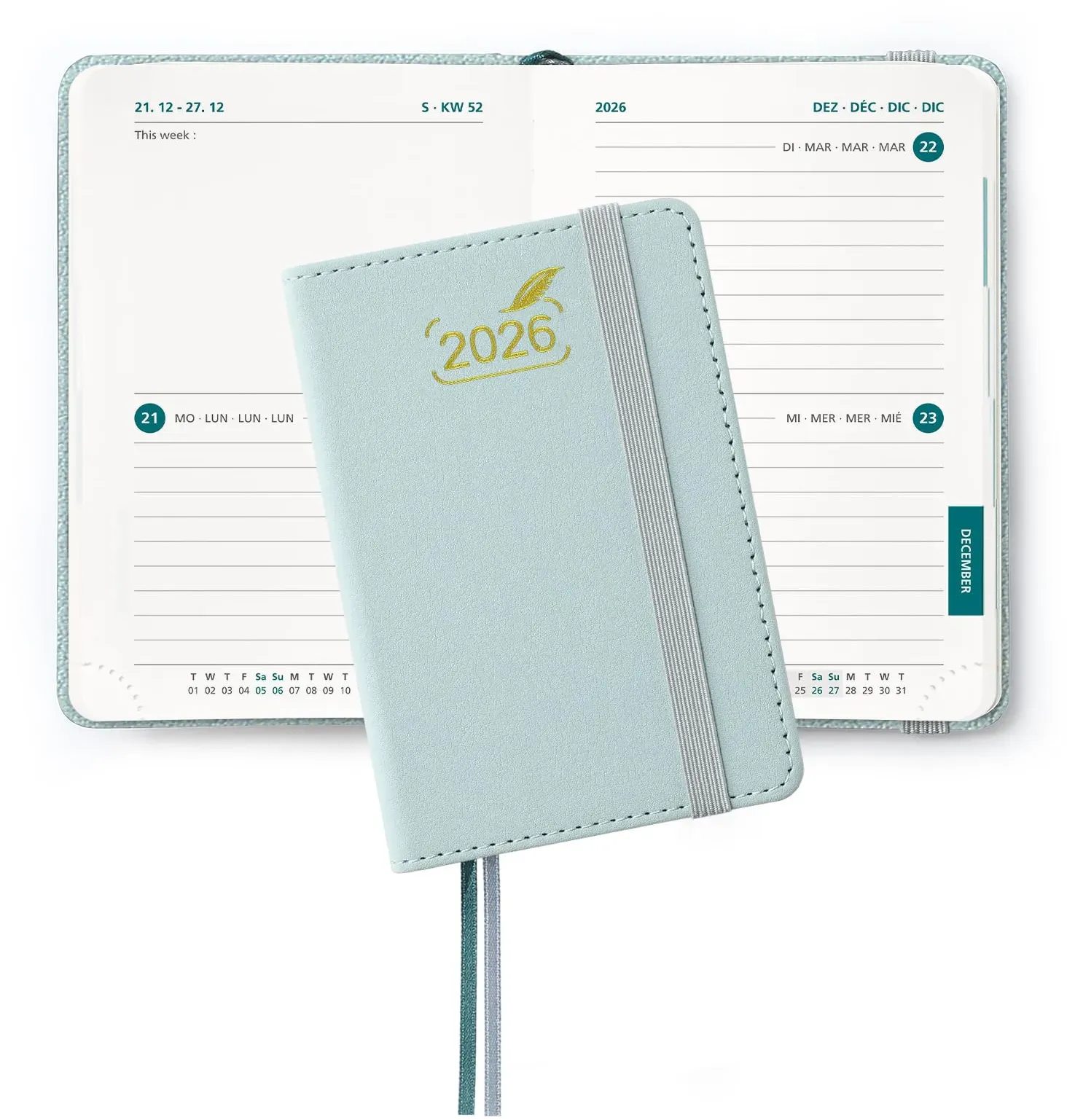 13 Händlerangebote bei billiger.de - Kategorie: Organizer - Baier & Schneider - Entdecke die Flexibilität des BRUNNEN Taschenkalenders Mod. 723 '26 - perfekt für unterwegs, um Deine Termine und Pläne stets im Griff zu haben. Schlank und kompakt im A7-Format passt dieser Taschenplaner problemlos in jede Tasche und bietet trotz kleiner Größe viel Raum für Deine Organisation. Nutze das klare Kalendarium mit einer Wochenübersicht auf zwei Seiten, um Deine Woche präzise und effizient zu planen. Der langlebige Kunststoff-Einband schützt den Taschenkalender in Schwarz und verleiht ihm eine elegante Note in jedem Alltagsgebrauch. Durch die Jahres- und Monatsübersichten behältst du leicht den überblick über Deine langfristigen Ziele und Verpflichtungen. - GTIN:4061947142624 Dieser BEZEND Taschenkalender bietet mit zwei Tagen pro Seite viel Platz für Notizen und Termine in einem robusten PU-Leder Hardcover. ![]() ![]() BEZEND Taschenkalender 2026 Klein A7 12 x 8 cm - 2 Tage pro Seite - Mini Terminplaner & Buchkalender 2026 mit PU-Leder Hardcover, Graublau