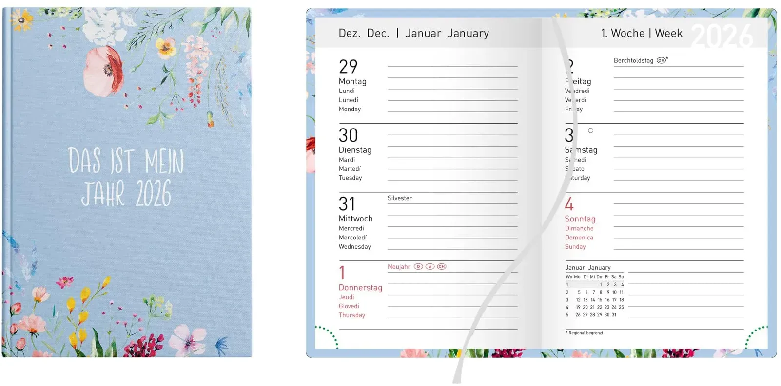 4 Händlerangebote bei billiger.de - Kategorie: Organizer - IDENA - Terminkalender im Format DIN A7 für das Jahr 2026, 4-sprachig in Deutsch, Englisch, Französisch und Italienisch 1 Woche auf 2 Seiten: Je Wochentag von Montag bis Sonntag steht eine Spalte mit 6 Zeilen zur Verfügung Der Hardcover Einband mit Blumen besitzt einen weichem Griff, ist sehr strapazierfähig und verleiht dem Kalender ein edles Aussehen Inklusive Jahres- und Monatsübersicht, Schulferien, Feiertagen sowie Seiten für Projekt- und Urlaubsplanung sowie Notizen Insgesamt 168 Seiten aus 80 g/m2 FSC zertifiziertem Papier in Weiß mit einem Leseband sowie abtrennbaren Ecken - GTIN:4064997120420 Dieser Taschenkalender bietet eine elegante Lederoptik und kommt direkt mit einem passenden Kugelschreiber. ![]() ![]() Kamber Office Taschenkalender 2026 A7 mit Kugelschreiber und Halterung in feiner Lederoptik, Terminplaner 2026 mit Stift Timer inkl. Jahreskalender und Wochenübersicht (Schwarz)