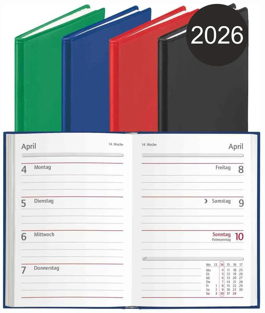 2 Händlerangebote bei billiger.de - Kategorie: Organizer - Herlitz - Taschenkalender A6 Format Ausführung: 1 Woche = 2 Seiten Format A7 Lieferumfang: 1 Kalender in zufälliger Farbe (rot oder blau oder schwarz oder grün) - GTIN:4008110429373 Dieser rido/idé Taschenkalender aus Kunststoff in Sandfarbe ist mit 4,32 Euro eine günstige und farbige Alternative. ![]() ![]() rido/id Taschenkalender Mod. partner/Industrie I 2026 A7, Kunststoff, sand