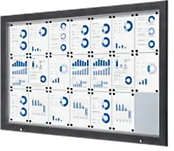 Schaukästen Büroausstattung - EAN:4016946202008 - Zur Präsentation Ihrer Informationen - der FRANKEN Schaukasten PRO silber 21x DIN A4Im FRANKEN Schaukasten PRO silber 21x DIN A4 kommen Ihre Urkunden, Dokumente und sonstigen Informationen perfekt zur Geltung.Welche Besonderheiten erwarten Sie?Sie erhalten folgende Ausführung: Schiebetüren, magnethaftend, beschriftbar. Platz für 21x DIN A4 DokumenteEingesetzt werden kann der FRANKEN Schaukasten PRO im Innenbereich und somit eignet er sich hervorragend dafür, wichtige Informationen in Büros zu präsentieren. Haben Sie das Modell erst einmal am gewünschten Platz angebracht, bietet es Ihnen Platz für Dokumente mit den Maßen 21x DIN A4. Insgesamt liegen die Maße bei 161,5 x 4,6 x 99,0 cm (BxTxH).Im Querformat nutzbarSie können das Modell ganz einfach an die Wand montieren. Damit Sie gleich loslegen können, wird Ihnen das Montagematerial direkt mitgeliefert. Anbringen können Sie das Modell im Querformat.Wissenswertes zum MaterialMit dem Modell sind Sie auf der sicheren Seite, denn die Sichtscheibe besteht aus ESG 4mm. Somit weist die Scheibe auch unter Belastung eine gute Stabilität auf. Weiter besteht der FRANKEN Schaukasten PRO silber 21x DIN A4 aus Aluminium, lackiertes Stahlblech.Passt dieses Modell zu Ihren Bedürfnissen?Damit Sie gleich anfangen können, erhalten Sie die Lieferung des FRANKEN Schaukastens PRO silber 21x DIN A4inklusive Montagematerial. - gefunden von Kelkoo Dieser Schaukasten mit Schiebetür bietet ESG-Sicherheitsglas und B1 Brandschutz, ideal für öffentliche Einrichtungen. ![]() ![]() Schaukasten Schiebetür 21x A4 Innen | ESG Sicherheitsglas, B1 Brandschutz, Sicherheitsecken | silber, magnetische Rückwand, abschließbar | für Schule, Kita, Behörde, Wand-Montage, Schiebetüren