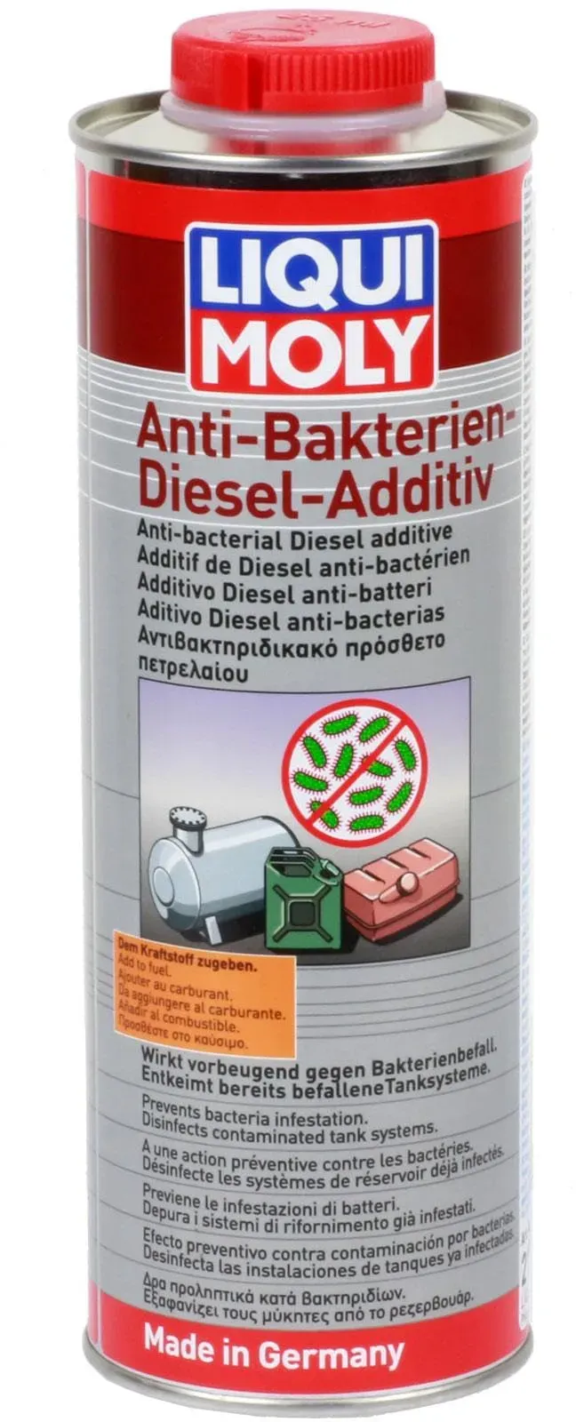 Verfügbarkeit: Sofort verfügbar, Kategorie: Additive - LIQUI MOLY - GTIN:4100420213175 - Liqui Moly 21317 Anti-Bakterien-Diesel-Additiv Hochwirksames Biozid mit breitem Wirkungsspektrum gegen Bakterien, Hefen und Schimmelpilzen. Zum vorbeugenden Einsatz in länger stillgelegten oder wenig genutzten Dieselfahrzeugen wie z. B. Baumaschinen, Nutzfahrzeugen, Wohnmobilen, Persone... - 39,68 Euro bei ELW-Fahrzeugteile - gefunden von billiger.de Dieses eBay-Angebot ist mit 40.23 Euro eine weitere Option für eine 1-Liter-Flasche. ![]() ![]() Liqui Moly - Anti-Bakterien Diesel eBay Additiv 1 Liter Dose - 21317
