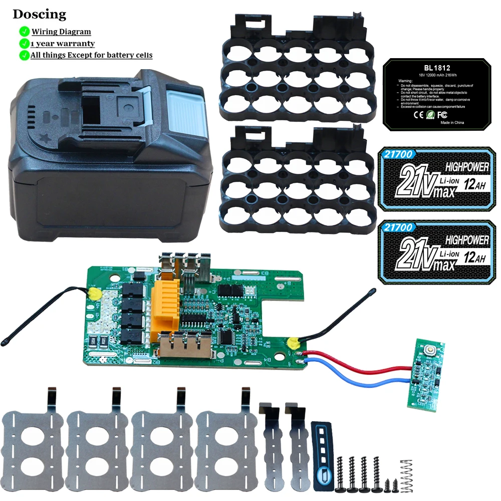 Doscing - 21700*15 Zellen Batteriegehäuse 50A Entladeschutz PCB BMS für Makita 18V Batterie DIY BL1860 BL1830 BL1890 8,0Ah 12Ah Kapazität - bei de.aliexpress.com - aus Yadore Produktdaten ![]() ![]() WIKRQIHL 10 Zellen 21700 Batteriegehäuse, kompatibel mit Makita, 18 V DIY BL1860 BL1850 Shell Box mit BMS-Leiterplatte, Ladeschutz, digital, BL1840(2 Sets)