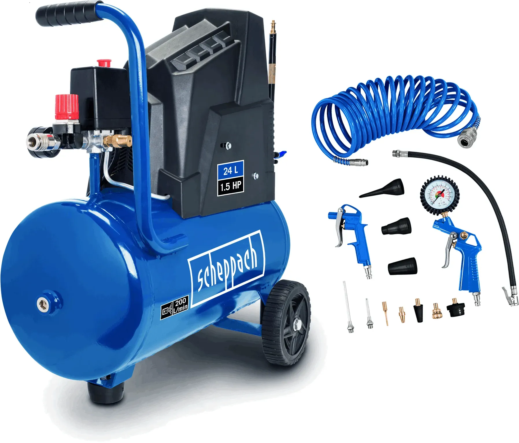 keine Angabe Sofort lieferbar, 4-7 Werktage in_stockScheppach - Kompressor HC30o 8bar 24 l ölfrei 200l/min inkl. 5m Schlauch & Zubehörset