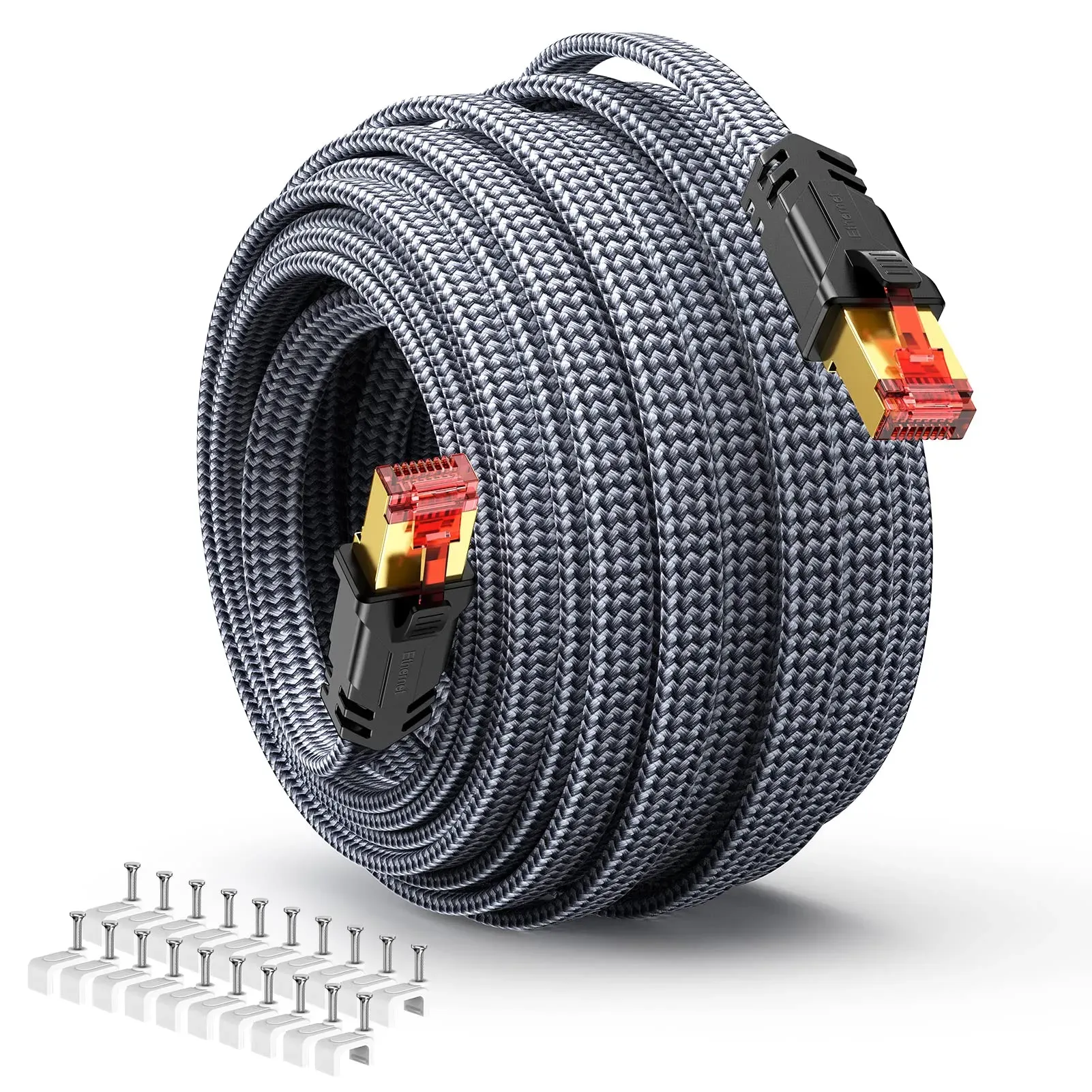 Kategorie: Netzwerkkabel - BUSOHE - GTIN:0760960485629 - Cat 8 Lan Kabel 40Gbps 2000MHz - Cat 8 Lan Kabel 25meter Weiß für kabelgebundene Heim- und Büronetzwerke; bietet eine Leistung von bis zu 2000MHz und eine Datengeschwindigkeit von bis zu 40Gbps pro Sekunde; rt eine schnelle Datenübertragung für Serveranwendungen, Cloud Computing und HD-Videostreaming Bessere Abschirmung - Bestehend aus 4 Paaren blankem Kupferleiter. SSTP (Screened Shielded Twisted Pair) Abschirmung bietet den besten Schutz vor elektromagnetischen Störungen und Hochfrequenzstörungen (EMI/RFI) und eliminiert fremdes übersprechen (AXT). Die abgeschirmten Rj45-Steckverbinder mit 50 Mikron vergoldeten Kontakten, vergossene Zugentlastungsstutzen und knallharte Formen sorgen für Haltbarkeit und eine sichere Verbindung. Breite Kompatibilität - Mit dem RJ45-Anschluss ist das Cat 8 Lan-Patchkabel kompatibel mit Computern, Laptops, Modems, Routern, Netzwerk-Switches, Netzwerkadaptern, Hubs, Druckern und anderen Netzwerkgeräten kompatibel. Rückwärtskompatibel mit Cat7, Cat6e, Cat6, Cat5e, Cat5. Leichter zu Handhaben - Das flache Design erleichtert das Verstecken oder Ausführen auf jeder Oberfläche; Es verwirrt nicht wie die typischen runden; Und das Kabel ist sehr robust, kann im Freien oder an der Wand verwendet werden. Aber wenn Sie sich dafür entscheiden, es unterirdisch zu verlegen, sollten Sie es besser durch einen PVC-Schlauch führen. Was Erhalten Sie - Cat 8 Netzwerkkabel 25meter, Lieferung mit 40 ... Das CABNEER Cat 8 Ethernet Kabel zeichnet sich durch sein robustes Nylon-Geflecht aus, das zusätzliche Haltbarkeit bietet. ![]() ![]() CABNEER Cat 8 Ethernet Kabel 25M, 40Gbps Netzwerkkabel Hochgeschwindigkeits 2000MHz Ethernet Kabel, Gigabit RJ45 Nylon Geflochtener LAN Kabel, Patchkabel für PS5/4 Router Modem