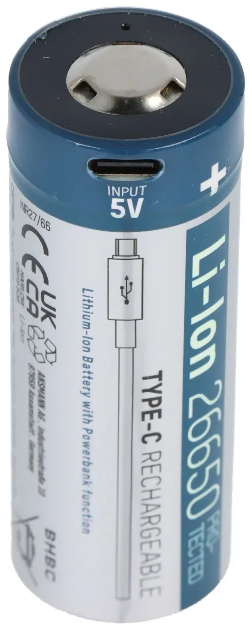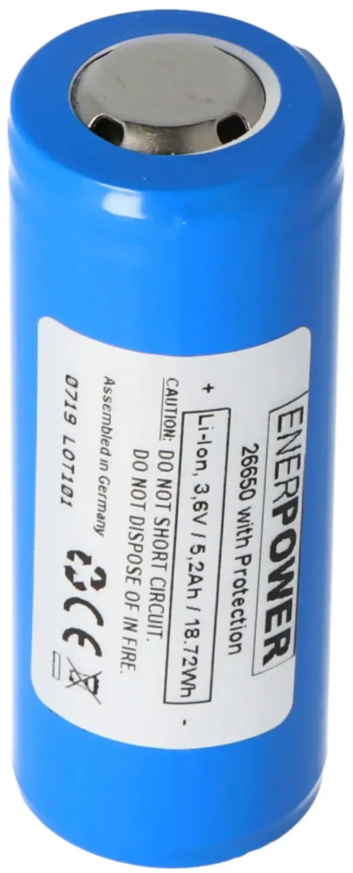Verfügbarkeit: 2-3 Werktage - Kategorie: Batterien & Akkus - Trustfire - GTIN:6956990503226 - Hochwertige Zellen mit langer Lebensdauer und hoher Zyklenfestigkeit. IC-Protection/PCB mit Kurzschluss-, überladungs- und Tiefentladungsschutz. Wiederaufladbare Batterie für Taschenlampen, E-Zigarette, E-Dampfer. Technische EigenschaftenKapazität:5000mAhNennspannung: 3,7VLadeschlussspannung: 4,2V ± 0,05Vkontinuierliche Entladung: 10AEntladeschlussspannung: 2,5VInnenwiderstand: 23mOhmsSchutz:vorhanden (integriert) 10APluspol: flachChemie: LiNiCoAlO2Durchmesser: 26,75 mm ± 0,15 mmHöhe: 72 mm ± 0,15 mmGewicht:92 gMicro-USB input: 5VLadeverfahren: CC-CV oder Micro-USB Bitte beachten: Durch die verbaute Schutzplatine ist der Akku ein wenig Länger als ungeschützte Modelle. Stellen Sie vor der Bestellung sicher dass der Akku mit Ihrem Gerät kompatibel ist. SicherheitshinweiseDiese Batterie von Feuer und Wasser fernhalten! Verwenden Sie diese Batterie nicht außerhalb der angegebenen Termperaturbereiche. Kinder sollten dieses Produkt nicht ohne Aufsicht von Eltern verwenden. Li-Io-Zellen sollten nur mit Schutzelektronik betrieben werden. Bei falscher Anwendung bzw. Kurzschluss kann es zur Brandentwicklung oder Explosion führen. - 17,95 Euro bei Kaufland.de - gefunden von billiger.de Die Enerpower 26650 ist eine geschützte Li-Ion-Batterie mit 5200mAh und erhöhtem Pluspol, was sie für bestimmte Geräte kompatibler macht. ![]() ![]() Enerpower 26650 Li-Ion-Akku 5200mAh 3,6V - 3,7V Pluspol erhöht PCB geschützt, 26,5x70mm