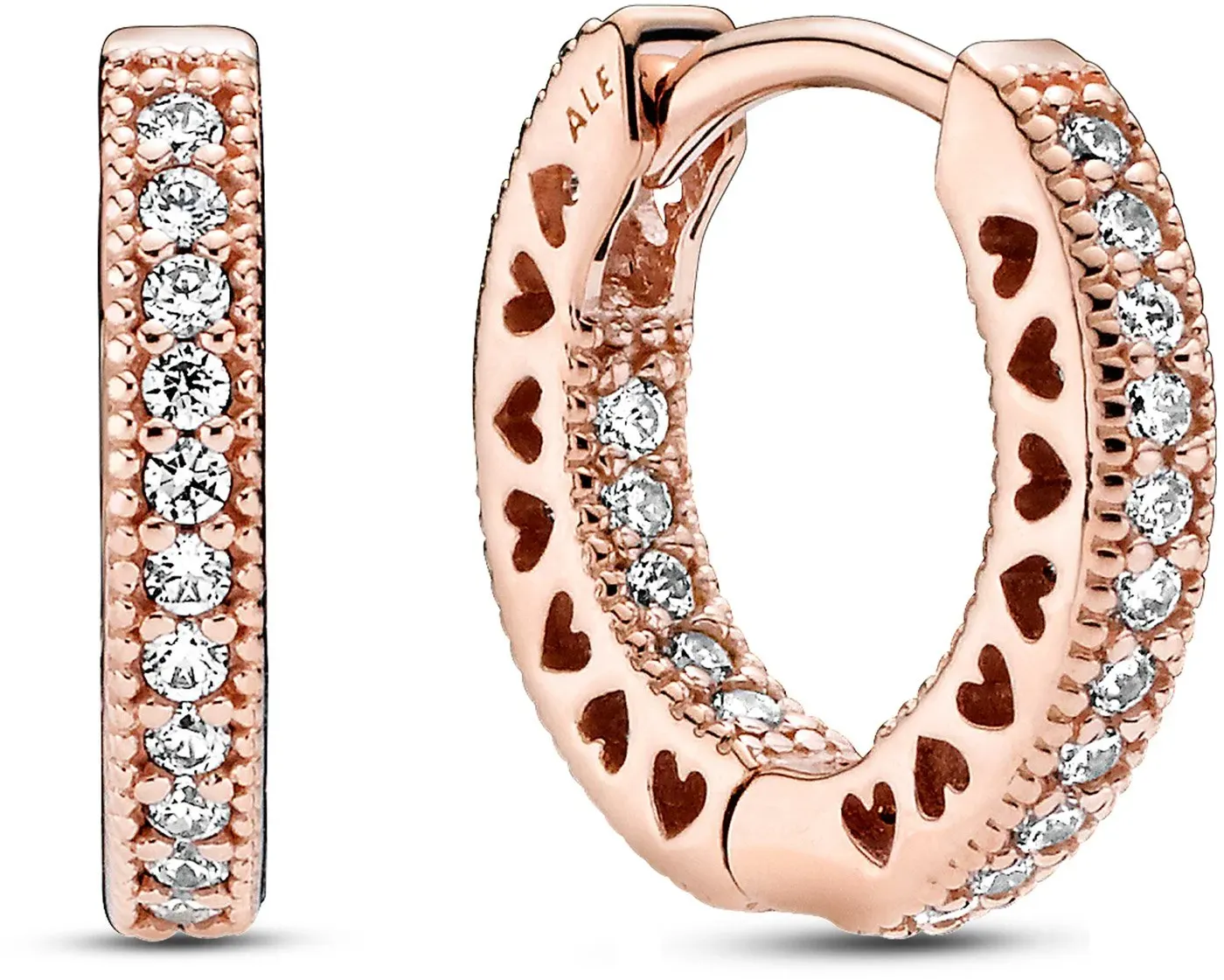 keine Angabe Gewöhnlich versandfertig in 4 bis 5 TagenPANDORA Signature Pavé-Herz Creolen aus 14 Karat rosévergoldeterr Metalllegierung mit klaren, funkelnden Cubic Zirkonia und ausgestanzten Herzen