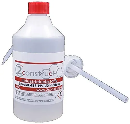 Kategorie: Klebeprodukte - 2Construct - GTIN:4058415025626 - Perfekter niederviskoser Allroundklebstoff für die meisten Materialien und Applikationen, wo keine extremen Zusatzanforderungen gestellt werden. Er ist äußerst dünnflüssig und reagiert mit sehr schneller Aushärtung. Es können Hölzer, Glas, Metalle, Elastomere und die meisten Kunststoffe verklebt werden. Fließt durch Kapillarwirkung weit zwischen die zu verklebenden Teile, wodurch sehr glatte Materialien mit dünnstem Klebefilm verbunden werden können. Spaltüberbrückung bis ca.0,1mm. - 53,19 Euro bei Amazon Marketplace Home Improvement - gefunden von billiger.de ![]() ![]() 2Construct Sekundenkleber Serie 483 (hochviskos/dickflüssig, 500 g Flasche)