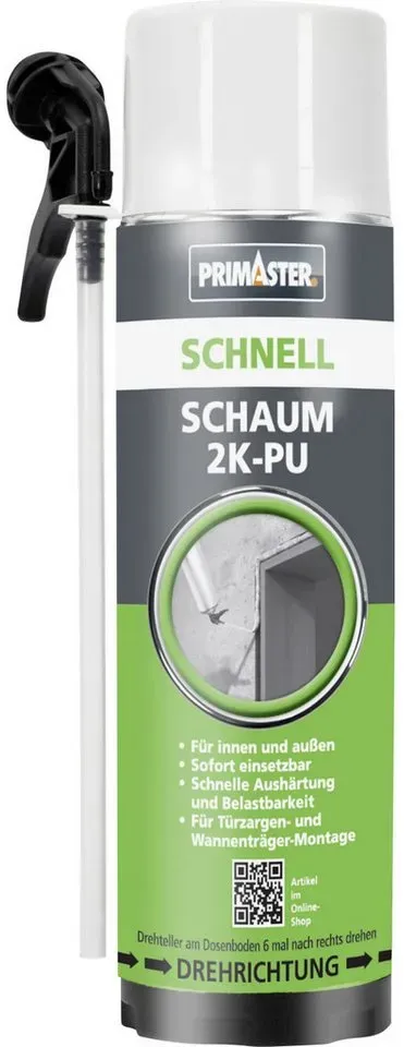 Zustand: Neu - Montageschaum - Primaster - 30612315 105071 - EAN: 4010327528640 - Primaster PU-Schnell Schaum 2K B2 400 ml 2-Komponenten-PU-Schaum in B2-Qualität, mit integriertem Härtersystem, sofort einsetzbar, härtet schnell und sicher aus, unabhängig von der Luftfeuchtigkeit. Zum Montieren von Türzargen, Wannenträgern und Duschtassen. Zeichnet sich durch eine schnelle Aushärtung und Belastbarkeit aus. - Verkäufer: hitseller-shop im amazon.de Marketplace Der Primaster Schnell Schaum 2K-PU Zargenschaum für 10,04 Euro ist eine gute Wahl für schnelle und sichere Montagearbeiten. Manomano.d e
