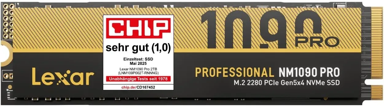 Kategorie: SSD Festplatten - fanxiang - Blitzschnell mit PCIe 5.0 & NVMe 2.0: Die fanxiang S910 Pro 2TB NVMe SSD nutzt die PCIe Gen5x4 Schnittstelle und den NVMe 2.0 Standard, um mit bis zu 14.000 MB/s Lesen und 10.000 MB/s Schreiben extrem hohe Geschwindigkeiten zu erzielen perfekt für Gaming, KI, 3D-Rendering und High-End-Anwendungen Optimiert für KI & niedriger Stromverbrauch: Mit 6nm-Technologie, AI-Beschleunigung und adaptivem Energiemodus bietet die PCIe Gen5 SSD schnelle Modellladezeiten bei bis zu 50 % weniger Verbrauch ideal für KI-Systeme, Multimodalität und mobiles Arbeiten Intelligente Wärmeableitung für Stabilität: Die S910 Pro PCIe 5.0 SSD verwendet Graphit-Kupfer- und Aluminiumfolien für optimale Kühlung. Integrierte Sensoren und dynamisches Wärmemanagement verhindern überhitzung und sichern eine stabile Leistung bei Dauerlast und hoher Umgebungstemperatur Hochwertige NAND & DRAM-Beschleunigung: Ausgestattet mit selektierten 3D-TLC-NANDs, dynamischem SLC-Cache und bis zu 2GB LPDDR4 DRAM erreicht die S910 Pro NVMe SSD stabile, schnelle Zugriffe ideal für große Datenmengen und dauerhafte Nutzung ohne Performance-Verlust Umfassender Schutz & überwachung: Unterstützt AES-256-Verschlüsselung, TRIM, S.M.A.R.T-Monitoring, NANDXtend ECC sowie Wear-Leveling für Datensicherheit, lange Lebensdauer und zuverlässigen Betrieb auch unter hoher Belastung Langlebig & zuverlässig: Die S910 Pro erfüllt hohe Ausdauerstandards und bietet bis zu 1400 TBW sowie eine eingeschränkte ... Die Lexar SSD bietet mit PCIe 5.0 Gen5 NVMe extrem hohe Geschwindigkeiten, ideal für professionelle Anwendungen und Gaming. ![]() ![]() Lexar SSD 2TB PCIe 5.0 Gen5 NVMe SSD - Bis zu 14.000MB/s, Erweiterte Thermokontrolle, DirectStorage-SSD für AI-Lasten, Gaming & Content-Erstellung Laptop/PC