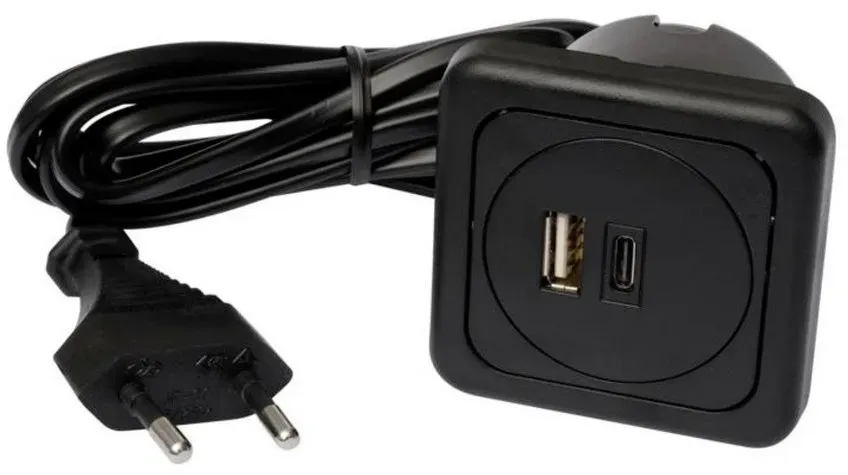 4 Händlerangebote bei billiger.de - Kategorie: Steckdosen - Inter Bär - Doppel-USB-A/C Ladesteckdose zum Laden von Smartphones, Tablets, Powerbänken und mobilen Endgeräten. Die Einheit ist mit einer Berührungsschutzkappe nach hinten gesichert und einer 2 m Zuleitung steckerfertig konfektioniert. Ideal zum Einbau in Fronten von Möbeln, Nachttischen, Küchenzeilen, Werkbänken oder Schreibtischen. - GTIN:4011644008037 Eine versenkbare 3-fach Steckdosenleiste mit 2x USB, die sich elegant in Möbel integrieren lässt. ![]() TecLines TVS009S versenkbare 3-fach Steckdosenleiste mit 2x USB, silber