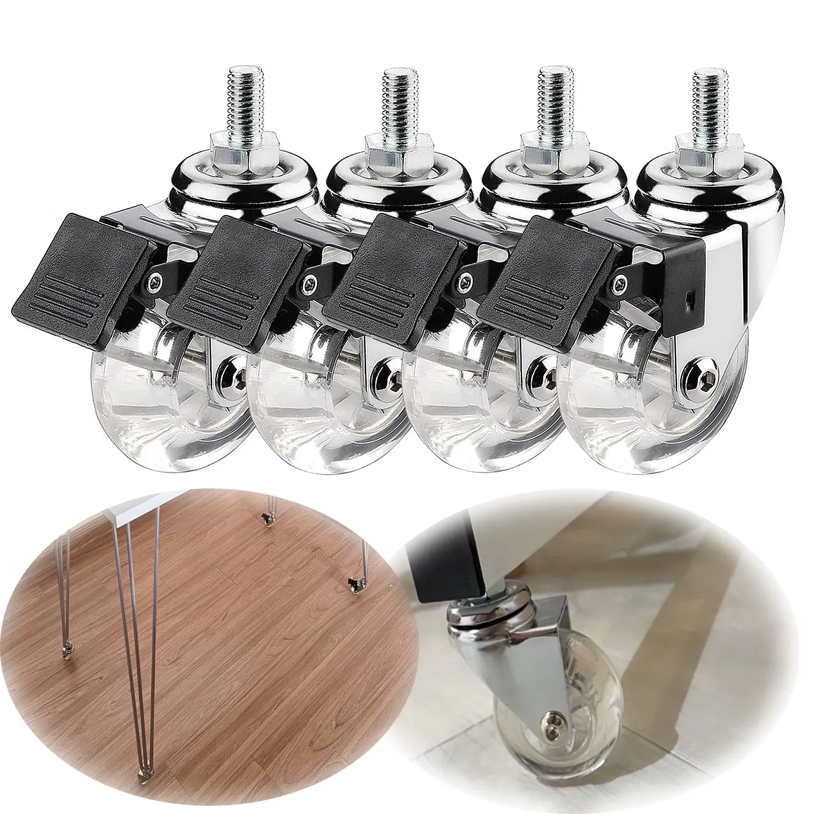 Zustand: Neu - Rollen - IMUNKT Sun Bin's Store - Sun Bin's Store - EAN: 9330759277394 - Material: Hergestellt aus hochwertigem transparentem PU-Material, sieht es schön aus und zeichnet sich durch Elastizität, Verschleißfestigkeit und Laufruhe aus. Beim Gleiten auf dem Boden wird der Boden nicht beschädigt. Sicherheit: Die Rollen verfügen über ein einzigartiges Bremsdesign, das durch leichtes Drücken festgestellt werden kann und nicht frei rutscht, was zu Unannehmlichkeiten führt. Hoher Sicherheitsfaktor. Flexible Drehung: Die Räder lassen sich problemlos um 360 Grad drehen, was das Bewegen sehr einfach macht. Als Transportmittel sind die Räder sehr praktisch. Weit verbreitet: Bürostühle, Babybetten, Schränke, Regale, Vitrinen, Kleinmöbel, Handkarren, Pflanzenregale usw. Kristallrollen: ausgestattet mit M8- und M10-Gewindespindeln, mit Rollendurchmessern von 1,5 Zoll (35 mm) bzw. 2 Zoll (50 mm). - Verkäufer: pengjingmei im amazon.de Marketplace ![]() ![]()