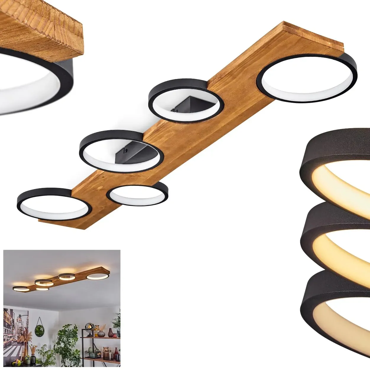 Verfügbarkeit: Auf Lager - Kategorie: Wandleuchten - Dehobo - GTIN:6975989952012 - Flexible BeleuchtungDer deckenlampe wohnzimmer kann um 350° horizontal gedreht und um 90° nach oben und unten verstellt werden,so dass Sie Ihre Anforderungen an die Innenbeleuchtung leicht erfüllen können Hochwertiges MaterialDie deckenlampe industrial style zeichnet sich durch exquisite Eisenverarbeitung aus, die rostfrei und langlebig ist,Nicht leicht abzulösen und zu verblassen, stark und haltbar Standard E14 LampenfassungDieser deckenstrahler 4 flammig ist für alle Arten von E14-Glühbirnen geeignet, Sie können den Glühbirnenstil nach Ihren Bedürfnissen wählen. Anwendbare Spannung: AC 220-240V/50Hz, maximale Leistung: 40W per Spot, (Keine Glühbirne) Einfach zu installierenDiese led deckenlampe kann als Wandstrahler oder als ceiling lamp verwendet werden. Installationsschritte:1.Installieren Sie die mitgelieferte Halterung 2.Installieren Sie die Glühbirne 3.Schließen Sie das Kabel an 4.Befestigen Sie die Leuchte an der Halterung Vielfältige SzenenanwendungenDeckenstrahler kann an der Decke als wohnzimmerlampe, küchenlampe,schlafzimmerlampe, deckenlampe flur und an der Wand als leselampe. Der hängelampe bietet Ihnen einen sehr Design-Lichteffekt, der eine gute Wahl für Sie ist - 34,99 Euro bei Amazon Marketplace Home - gefunden von billiger.de Die Trio Leuchten LED Deckenleuchte Barca kombiniert modernes Design mit Holz und einem praktischen Switch Dimmer. ![]() ![]() Trio Leuchten LED Deckenleuchte Barca 641110332, Schwarz matt, Holz Kiefer naturbelassen, inkl. 40 Watt LED, Switch Dimmer