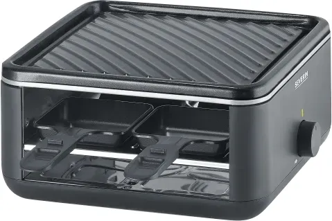 Auf Lager Versand durch AmazonSEVERIN Mini Raclette-Grill für 4 Personen, kleines Raclette mit antihaftbeschichteter Grillplatte, Extra Tiefe Pfännchen, Kompakter Tischgrill, 600W Leistung, Black Line, RG 2360