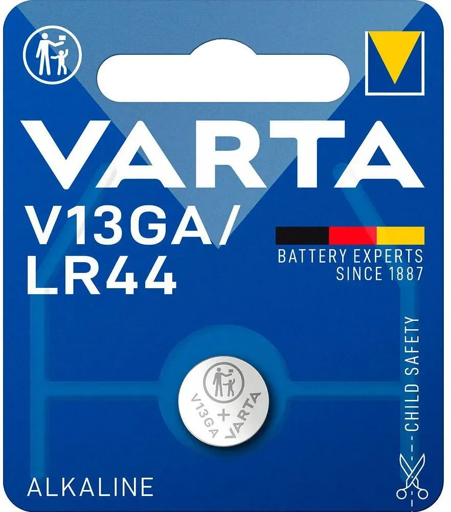 Verfügbarkeit: Auf Lager, sofort versandfertig Lieferzeit 1-2 Werktage - Kategorie: Batterien & Akkus - Varta - GTIN:4008496297641 - VARTA V13GA / LR44 Knopfzelle - 1,5 V - 125 mAh - 0,45 Euro bei Office Partner GmbH - gefunden von billiger.de ![]() ![]() Varta Cons.Varta Batterie Electronics V 13 GA Bli.1