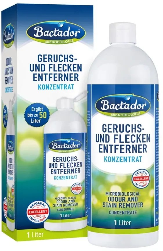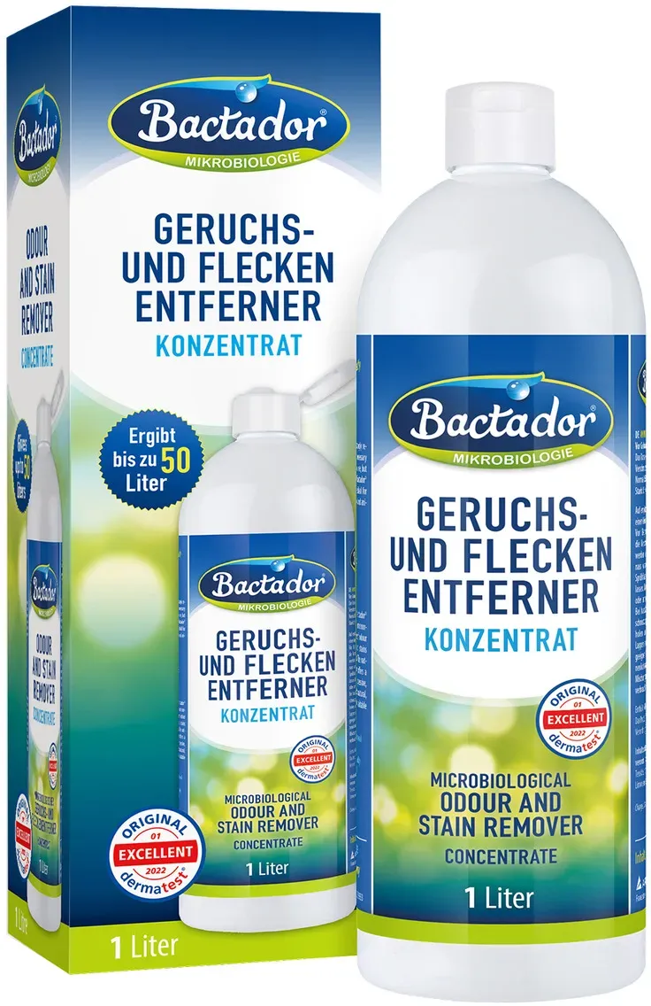lieferbar-in 2-3 Werktagen bei dirBactador Bactador Geruchs- und Fleckenentferner Konzentrat 1 l Flüssigreiniger