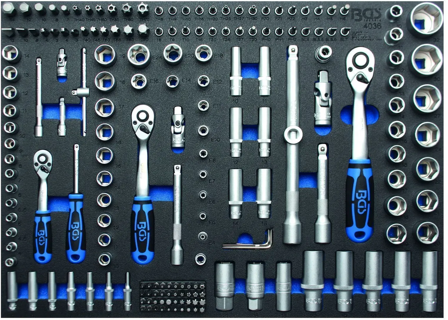 keine Angabe keine Angabe in_stockBGS technic Werkstattwageneinlage 3/3: Steckschlüssel-Satz 192-tlg. aus Schaumstoff mit Steckschlüssel-Satz für Werkstattwagen, 4036)